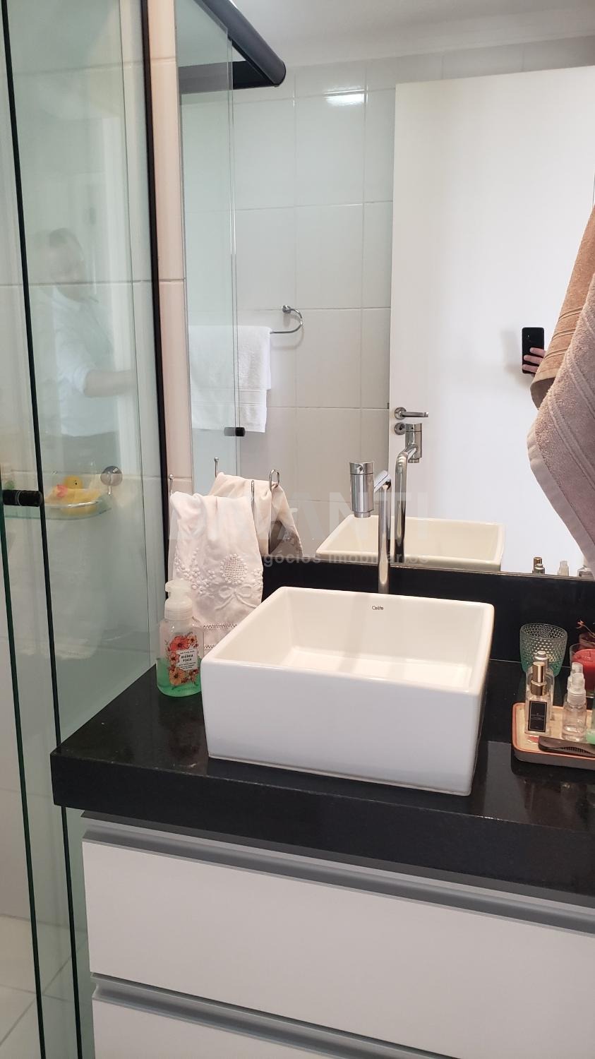 Com 75m², 2 dormitórios com armários planejados, sendo 1 suíte, banheiro social, sala de jantar, sala de TV, cozinha com armários planejados, lavanderia com armário. A sala de TV é reversível, podendo virar outro dormitório, ficando com 3 dormitórios no total. 2 vagas cobertas de garagem.