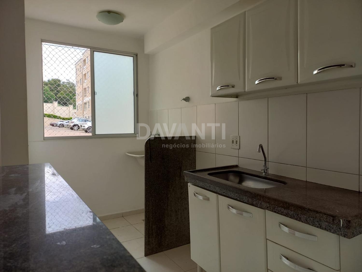 Apartamento com 2 dormitórios sendo 1 suíte, sala ampla, cozinha com armários, área de serviço, 1 vaga de garagem.