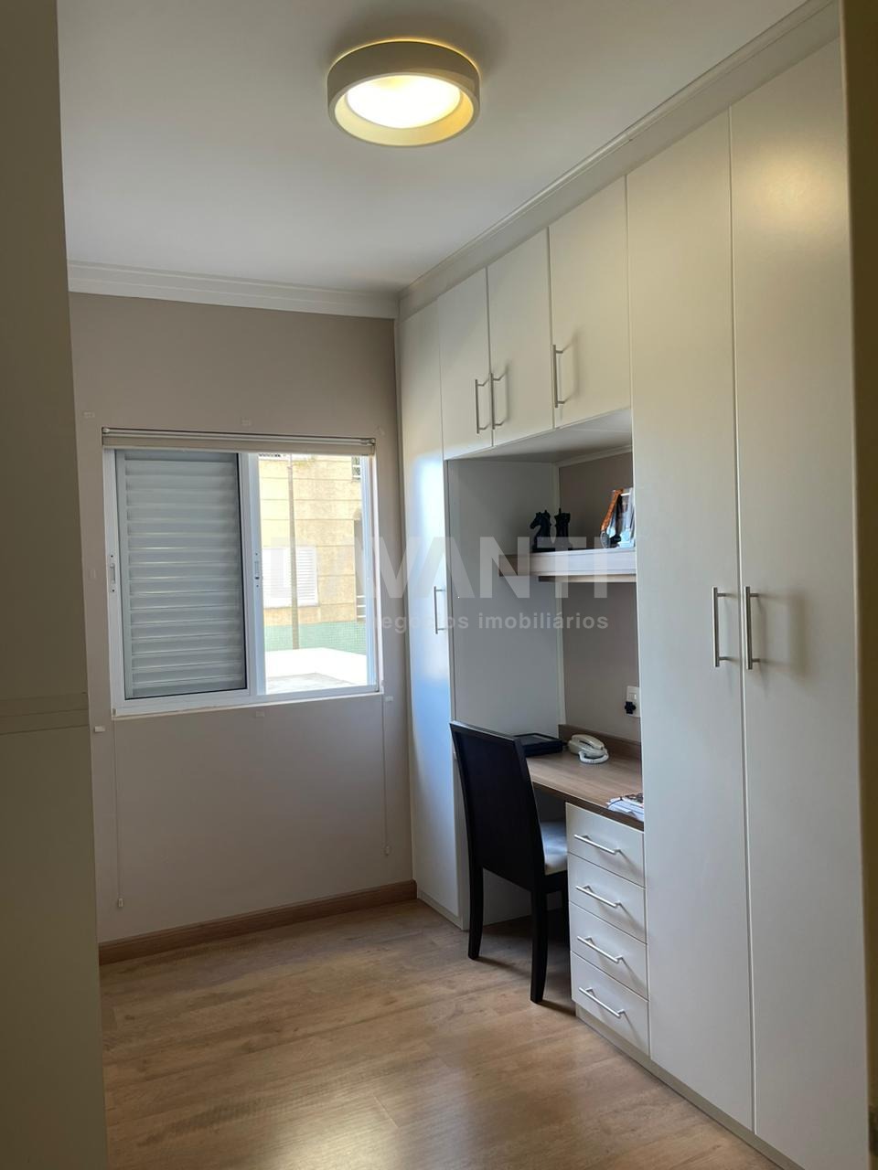 Três quartos espaçosos com armários planejados, sendo uma suíte elegante.