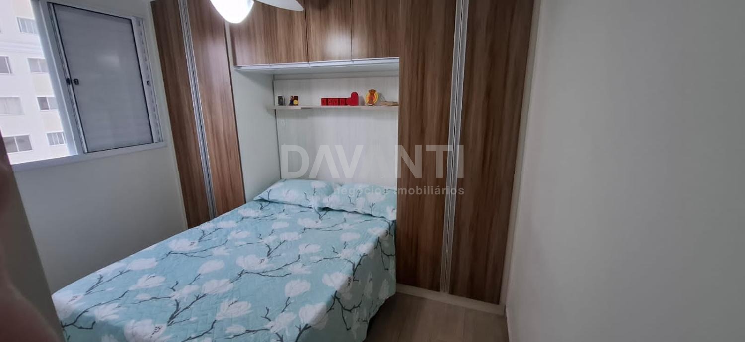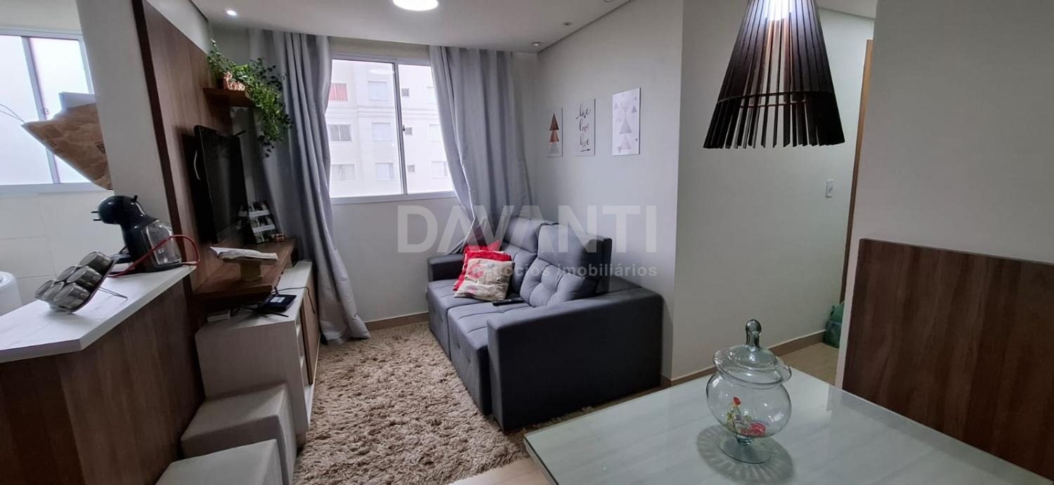 Apartamento à venda no Condomínio Parque Cachoeira dos Ventos em Campinas na Davanti Negócios Imobiliários. Apartamento com salas de estar e jantar integradas, cozinha americana planejada com área de serviço, banheiro social, são 2 quartos e 1 vaga descoberta. Condomínio com ótima localização, atrás do Carrefour Valinhos, e conta com: portaria 24 horas, salão de festas, quiosque com churrasqueira, playground e mini mercado. Agende sua visita com a Davanti Negócios Imobiliários.