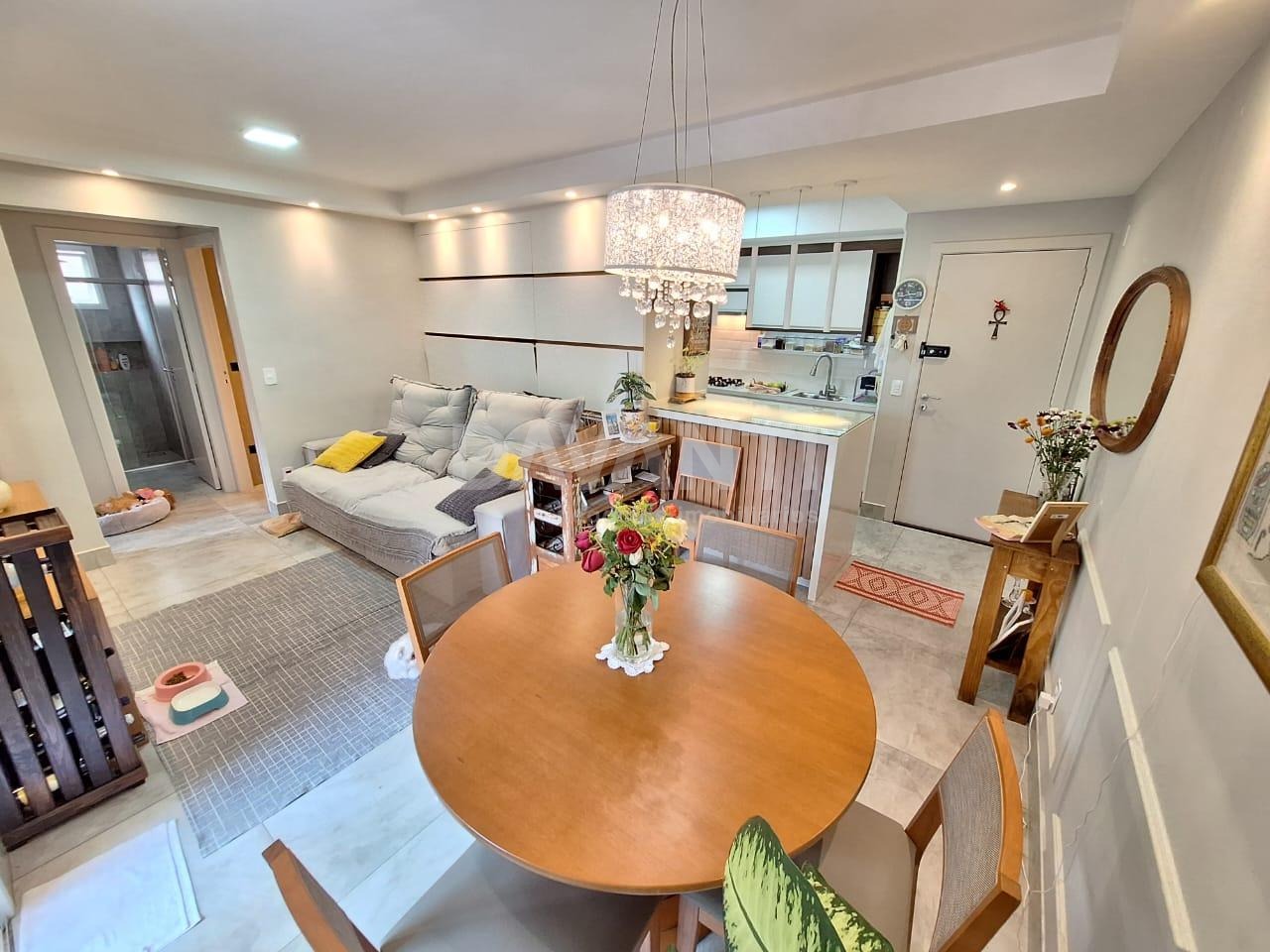 Apartamento decorado e pronto para morar, 62 m² muito bem distribuídos, 2 quartos (1 suíte), ar-condicionado na suíte e na sala, sala ampla para 2 ambientes, sacada espaçosa com vista arborizada, teto rebaixado com iluminação em LED, cozinha americana planejada, rico em móveis planejados e 2 vagas de garagem.