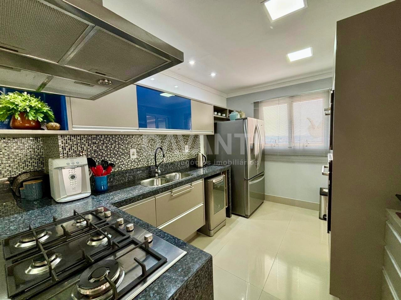 A cozinha completa dispõe de torre quente e cooktop, além de excelente integração com os ambientes. A área de serviço possui quarto e banheiro, que também podem ser utilizados como depósito.