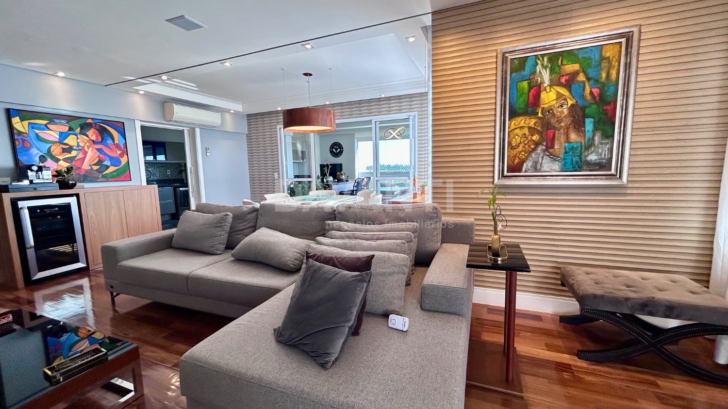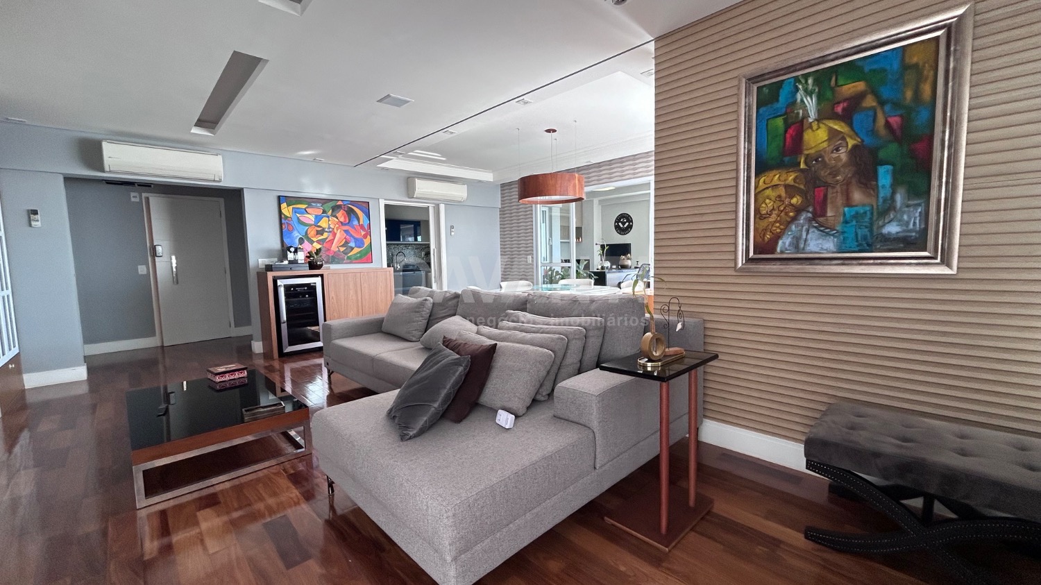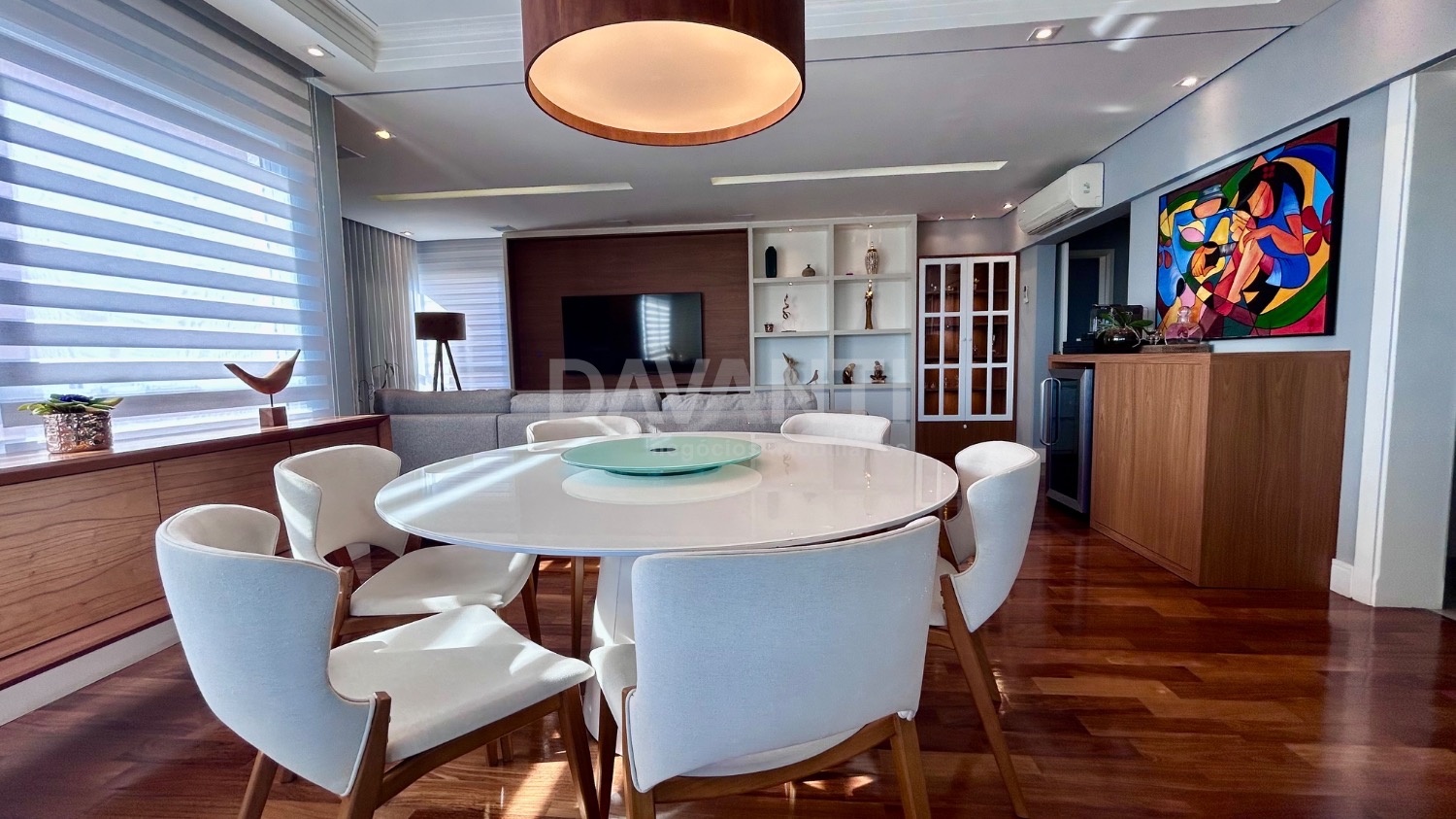 Apartamento sofisticado à venda, totalmente mobiliado. O imóvel conta com 3 suítes, todas com móveis planejados e acabamento diferenciado. Localizado em andar alto, o apartamento é totalmente climatizado e possui elevador social privativo.