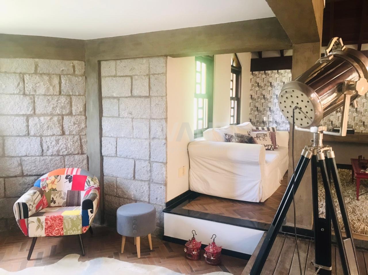 No piso superior são 03 amplas suítes com ar condicionado, sendo a máster com banheira hidromassagem e closet. No piso térreo temos um hall de entrada, lavabo, escritório com vista para o jardim, living para 03 ambientes, cozinha planejada com sala de refeição, lavanderia e dependência de serviço completa. Maravilhoso espaço gourmet com churrasqueira, home theather, sala de jogo e banheiro de apoio. Quintal com muito verde, jacuzzi com deck de madeira. Casa com charme rústico, vigas aparentes e piso cerâmico, sinta-se vivendo no seu refúgio nas montanhas. Excelente localização em Valinhos, próximo ao Centro e a uma grande rede de comércios como farmácias, postos, padarias e outros.