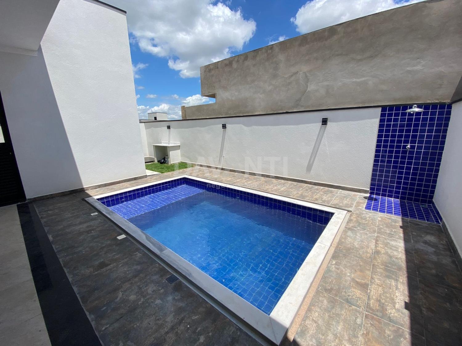 Nos fundos conta uma linda piscina, churrasqueira e bancada em mármore.