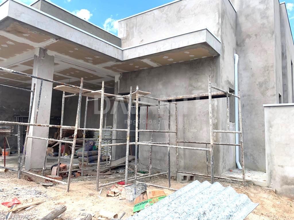 Casa térrea, em construção, previsão de entrega para maio de 2023, excelente projeto, pé direito duplo, moderna e clean, ambientes amplos e integrados, muito bem distribuídos, ventilação e iluminação natural, piso em porcelanato, rico em armários planejados, preparada para aquecimento solar e ar condicionado. São 3 suítes sendo 1 master com closet, living para 3 ambientes, lavabo, escritório, cozinha planejada, despensa, lavanderia, espaço gourmet com churrasqueira, piscina, quintal gramado e garagem para 2 carros.