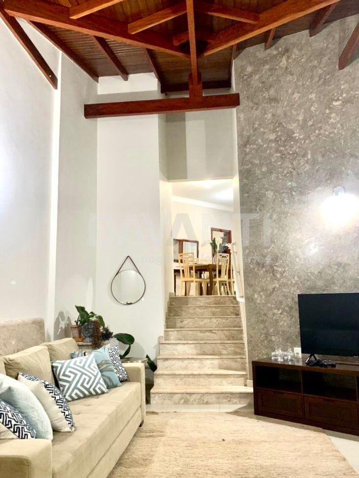Na melhor área do condomínio, rua plana e calma, vista privilegiada para a área de convívio, arquitetura com treliça, aproveitando ventilação natural e insolação, ar condicionado em todos quartos e energia fotovoltaica. São 3 dormitórios sendo 2 suítes, sala de jantar, sala de estar, cozinha toda planejada, despensa, área de serviço, espaço gourmet com churrasqueira e pergolado, corredor lateral decorado e 2 vagas de garagem.