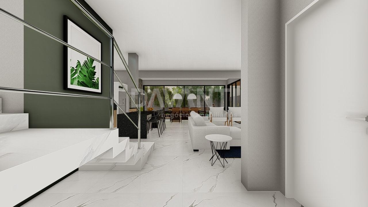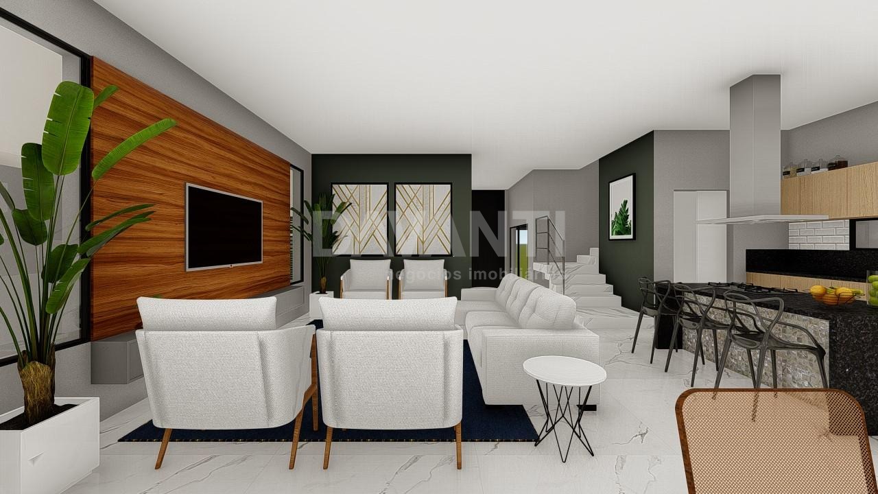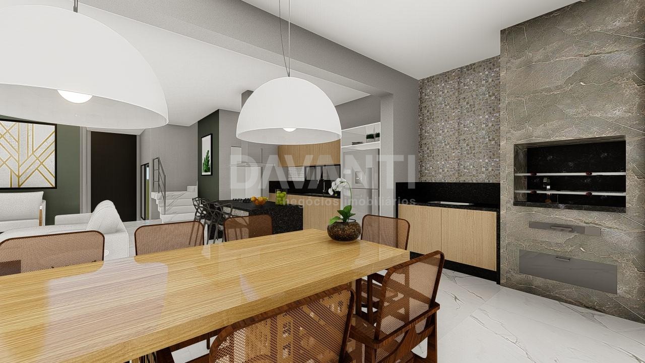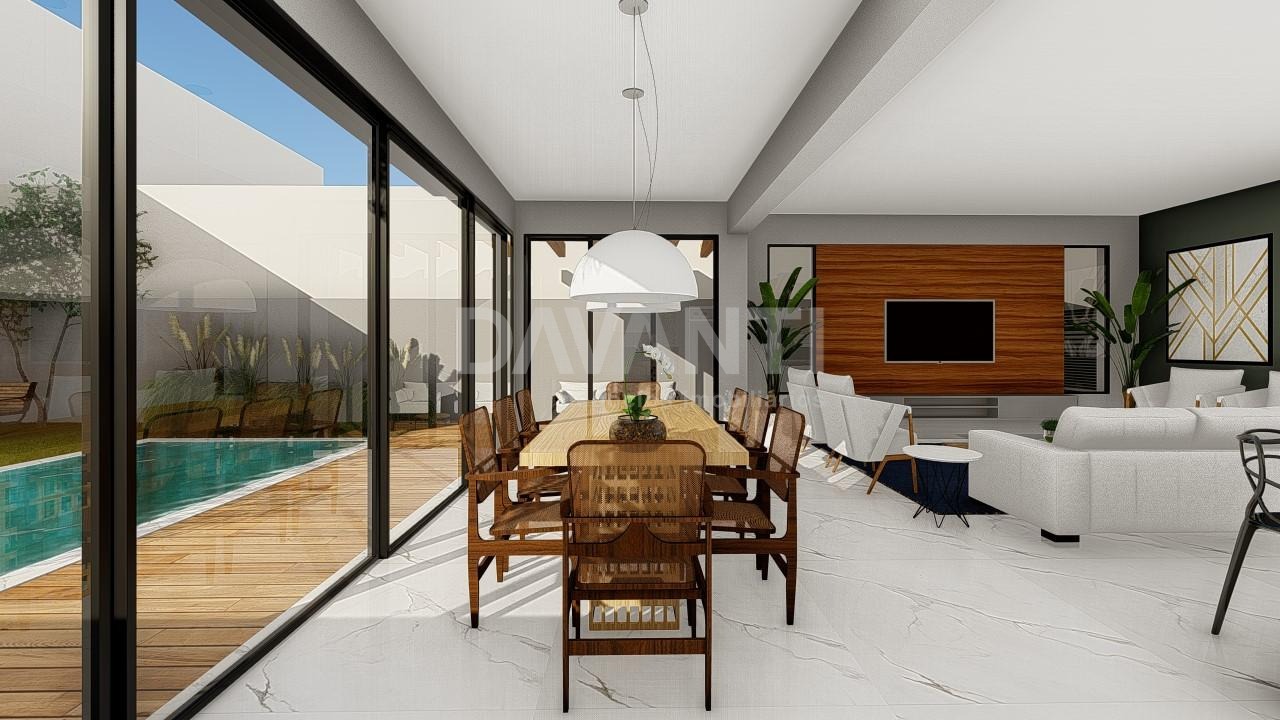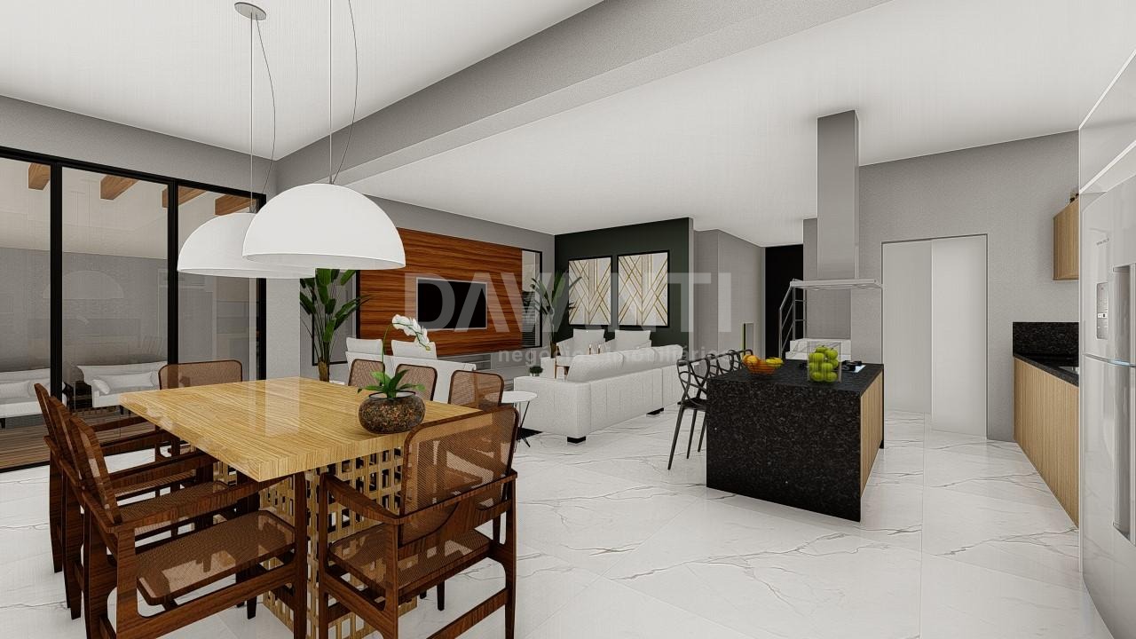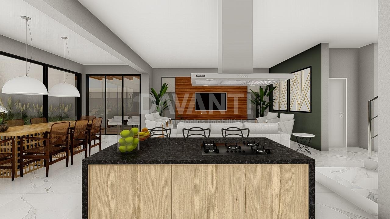 Linda casa com 3 suítes com varanda, sendo a master com closet, escritório, sala de jantar, sala de estar, lavabo, cozinha com armarios planejados, conceito aberto, ilha no centro, integrada com área gourmet, churrasqueira, piscina. Charme e conforto no mesmo espaço.