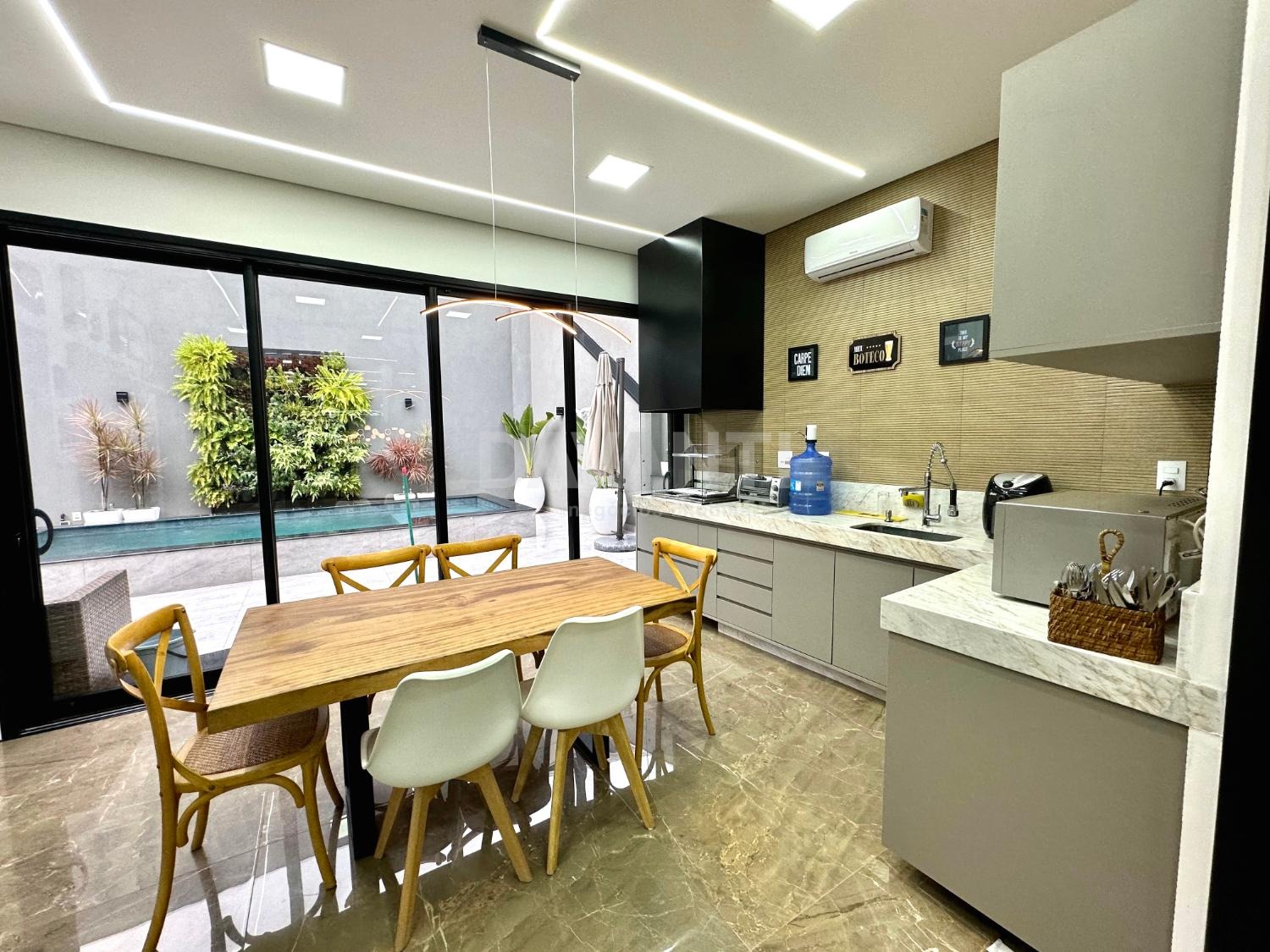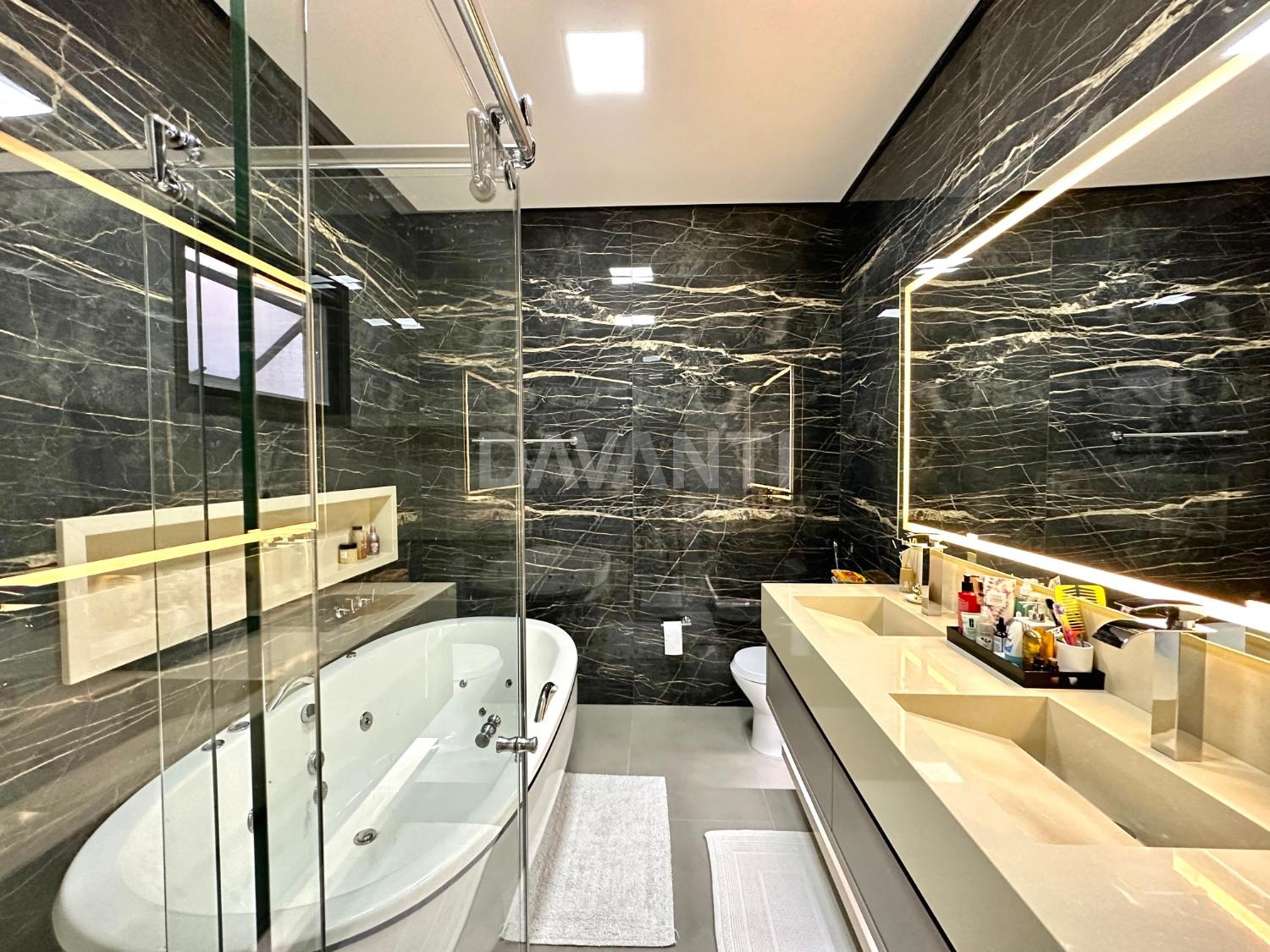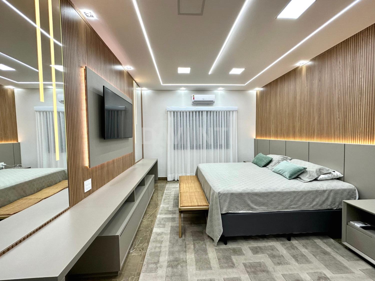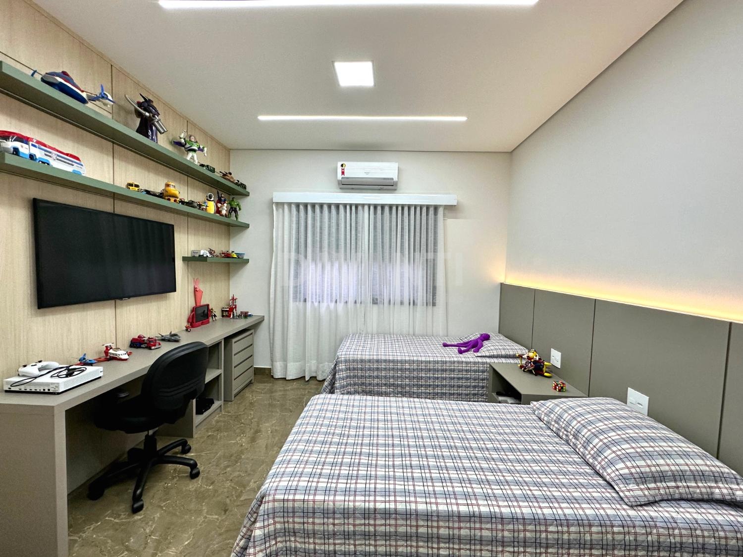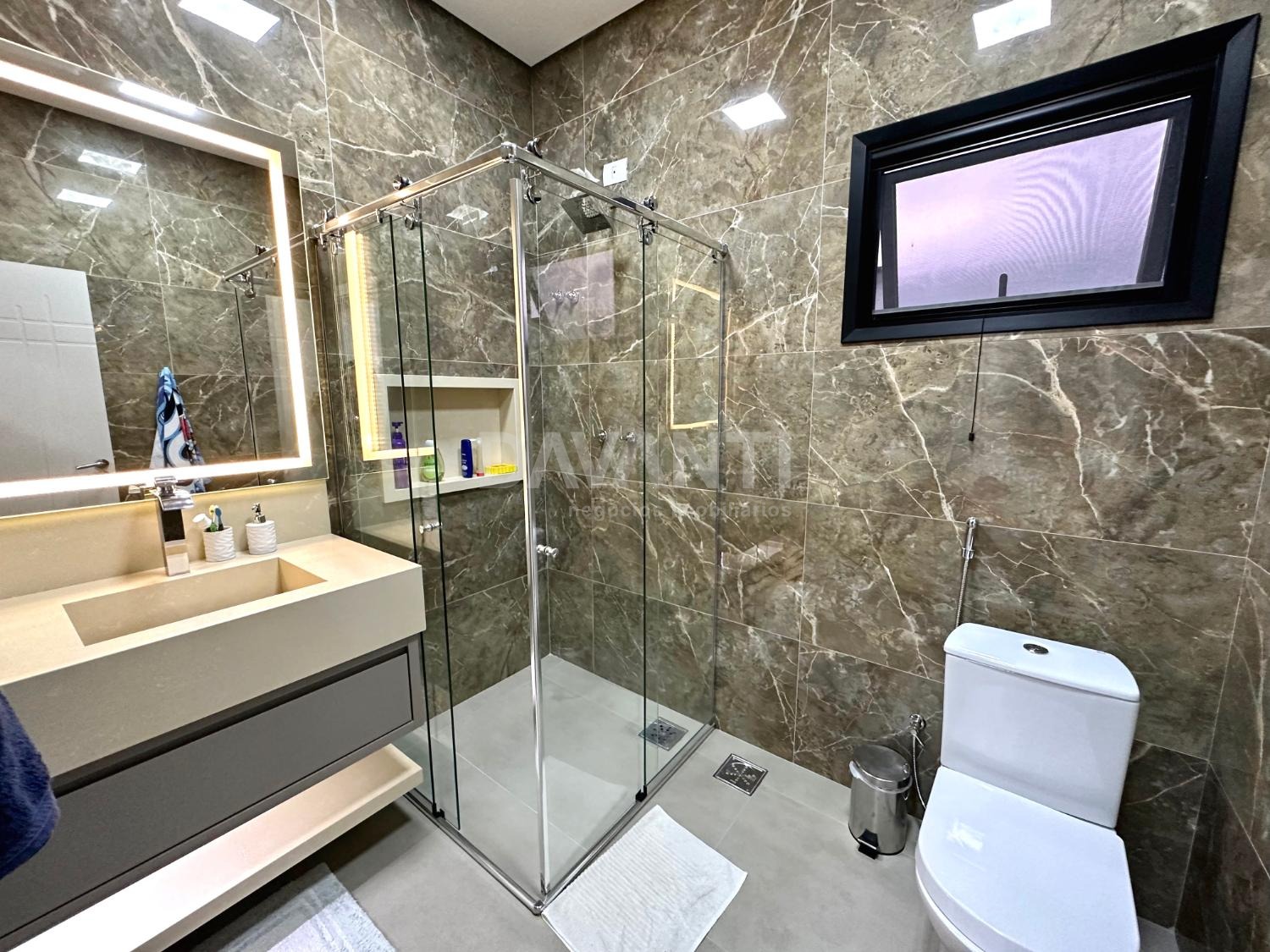 Casa nova, recém construída, em final de rua, sem vizinho de frente, projeto moderno e diferenciado, pé direito alto, ambientes amplos e integrados, muito bem distribuídos e arejados, iluminação e ventilação natural, fino acabamento, rico em armários planejados, piso em porcelanato, projetos luminotécnico em led, aquecimento solar e elétrico, ar condicionado em todos ambientes, persianas e cortinas automatizadas, energia fotovoltaica, elevador panorâmico e projeto paisagístico.