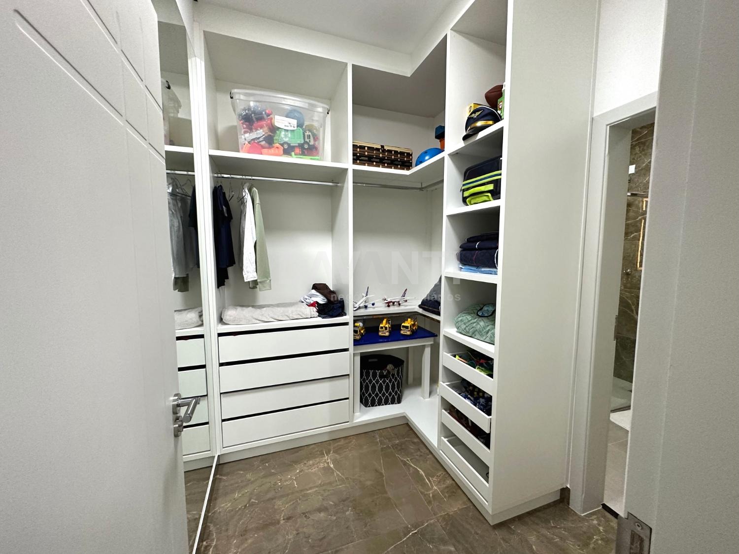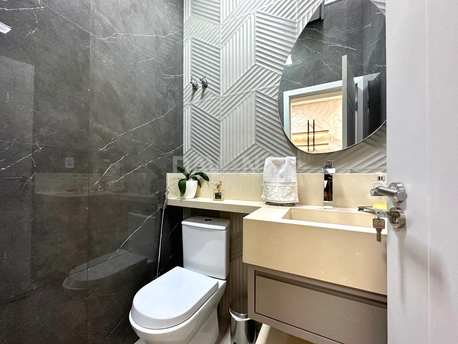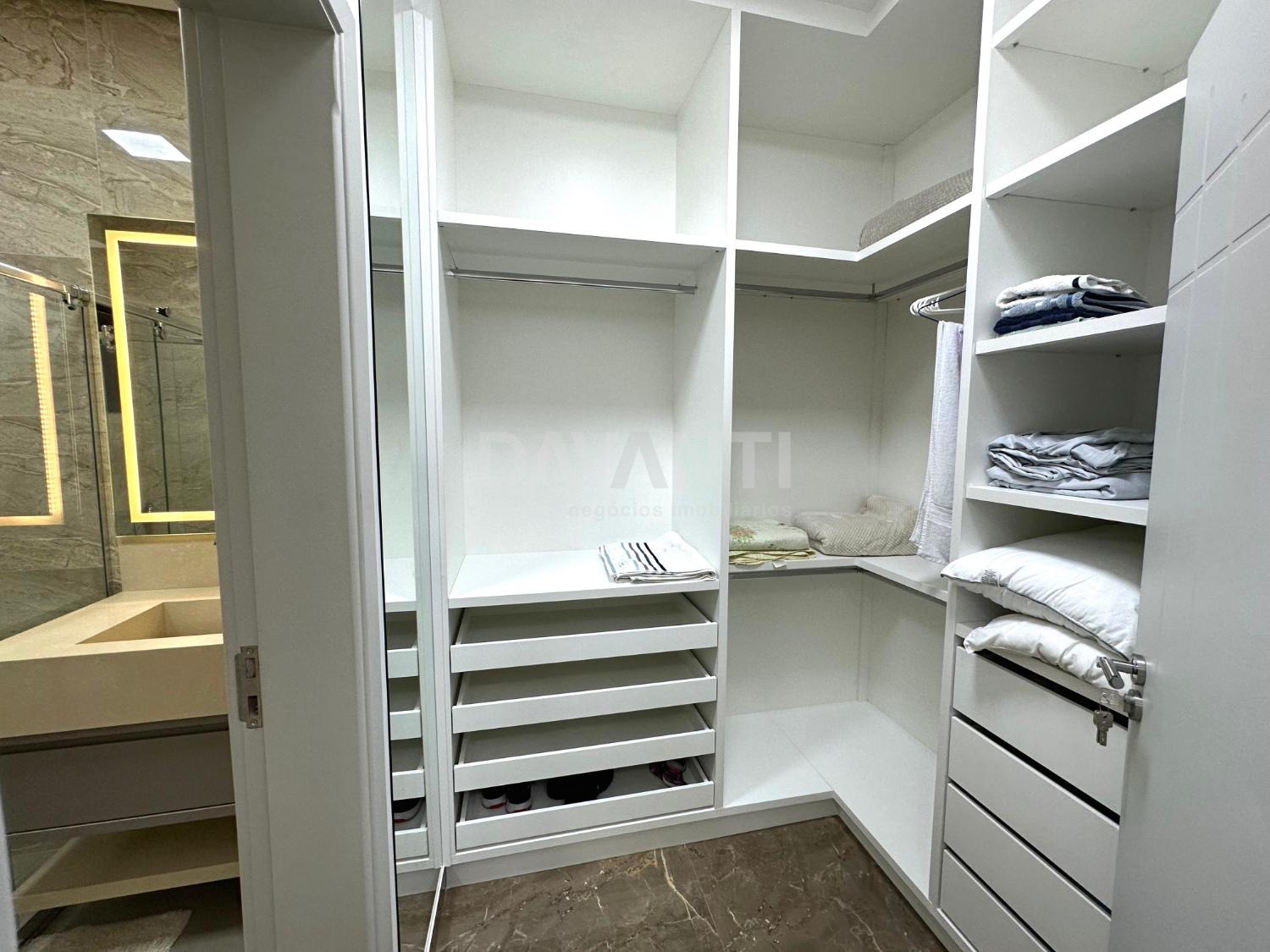 Área intima separada da área social com 3 suítes, todas com closet, sendo 1 master com banheira.