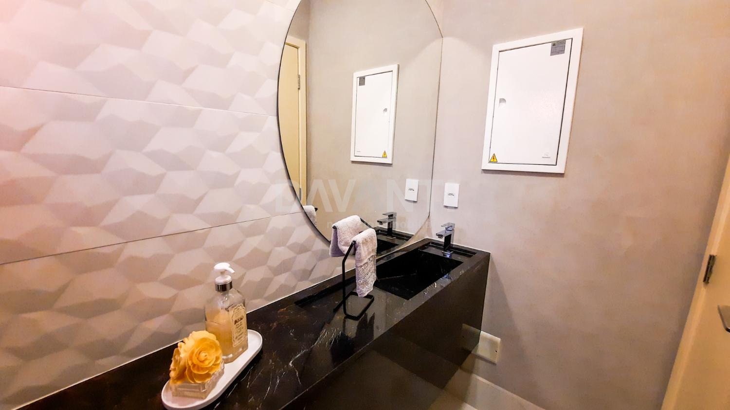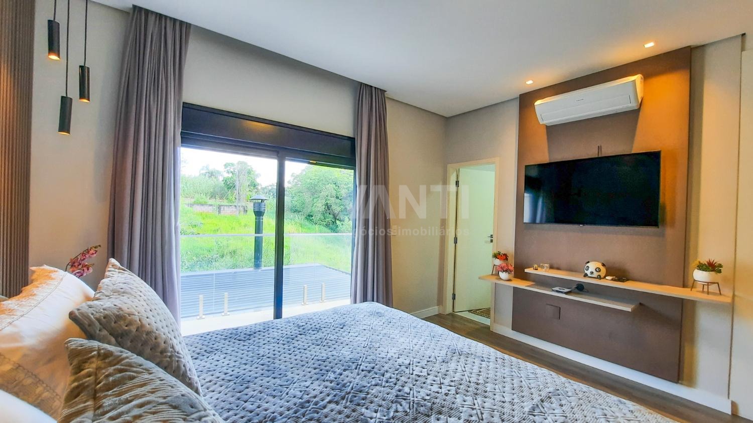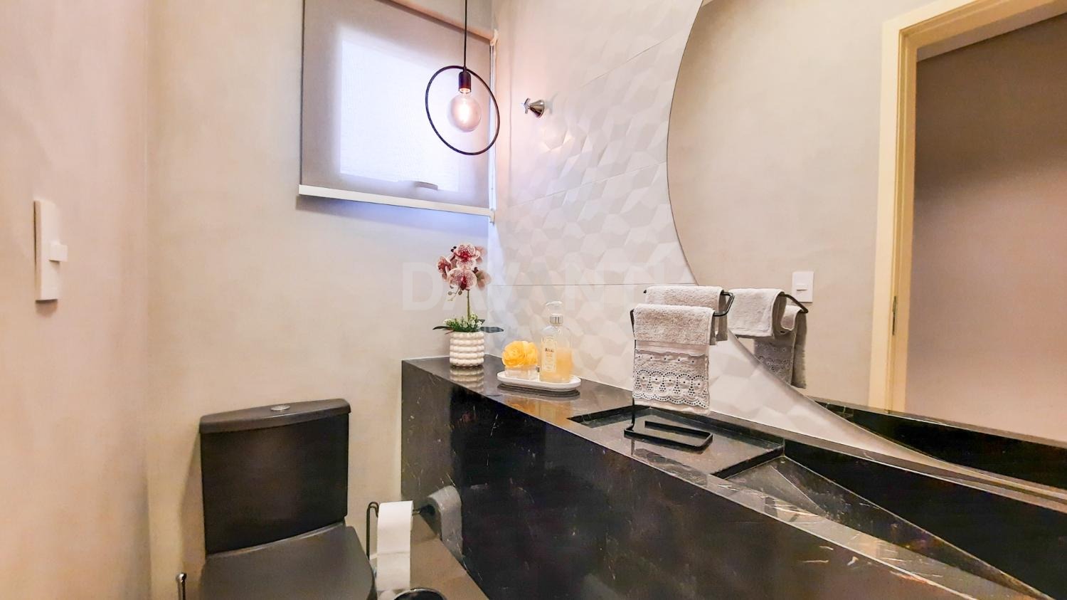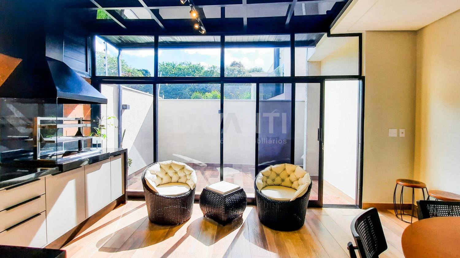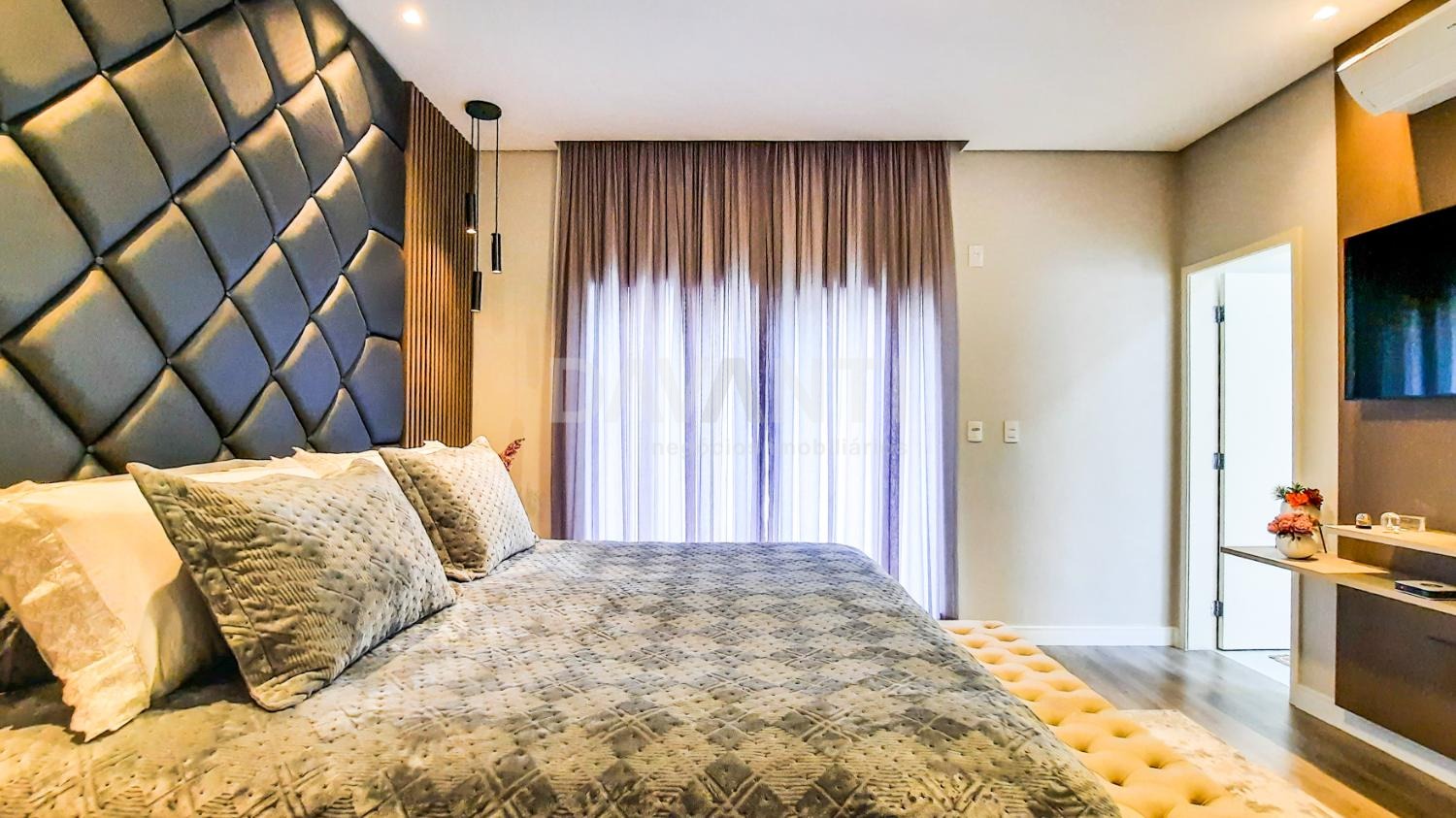 A casa foi totalmente reformada e possui o que há de melhor em acabamento, marcenaria e projeto luminotécnico que enriquece e traz sofisticação à cada ambiente desse imóvel. A sala para dois ambientes já possui com ar condicionado e móvel planejado, lavabo, cozinha estilo americana toda planejada, torre quente, cooktop e coifa. A lavanderia possui armários. Integrado à cozinha está a área gourmet moderníssima, fechada com vidros com churrasqueira, ventilador de teto e ar condicionado.