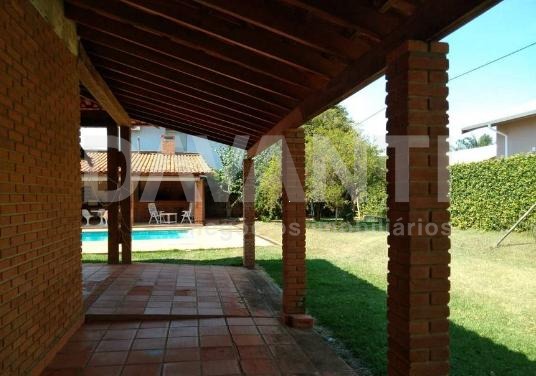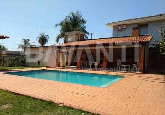 Residencial Shangrilá. Casa térrea com 396 metros de construção e aproximadamente 1460 metros de terreno, todo plano e toda avarandada. Living 2 ambientes, cozinha com gabinete, 2 suítes, área da serviço, piscina, área gourmet com forno de pizza e churrasqueira, banheiro externo, edícula e garagem para 4 carros sendo 2 cobertas, muito verde para você aproveitar com sua família. Localização privilegiada e tranquila no condomínio.
