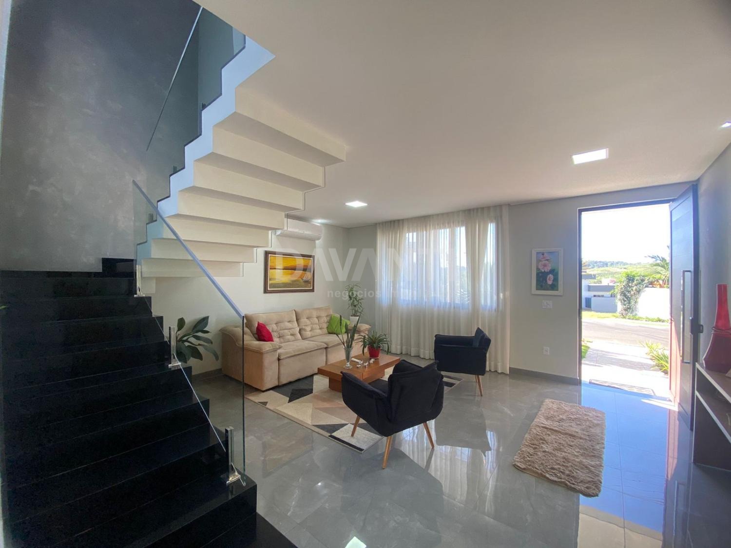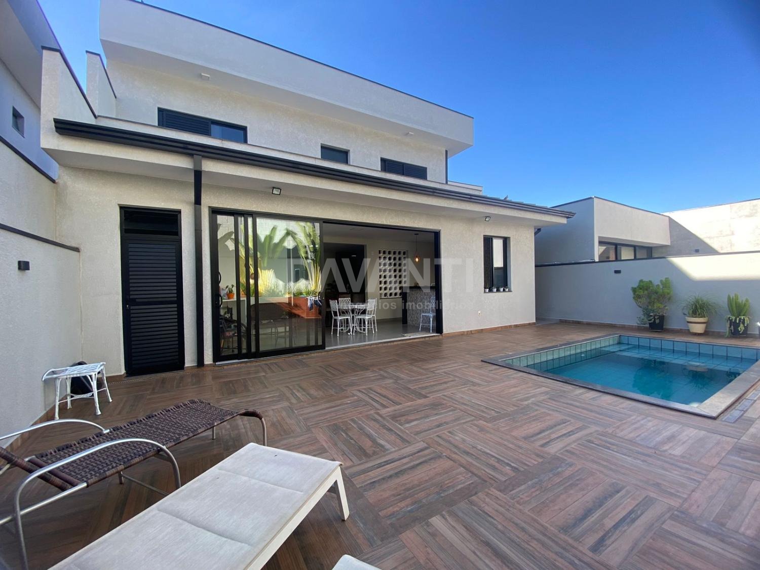 Casa à venda no Condomínio Residencial Villa do Sol em Valinhos na Davanti Negócios Imobiliários. Projeto moderno com ótimo padrão de acabamento. No piso superior são 4 quartos (2 suítes). No piso inferior um amplo living para 2 ambientes, com cozinha americana planejada, área gourmet, lavabo, sala de tv e quintal com piscina.
