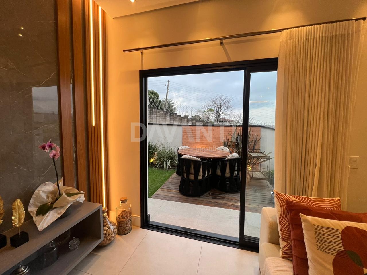 Casa à venda no Condomínio Porto do Sol em Valinhos na Davanti Negócios imobiliários. Condomínio com excelente localização, ficando apenas 3 minutos do Centro de Valinhos e com fácil acesso às principais Rodovias da região. Projeto diferenciado, iluminação e ventilação natural, fino acabamento, rico em armários planejados, ar condicionado e sistema fotovoltaico. São 3 quartos, sendo 1 suíte com closet, living para 3 ambientes com lavabo, sacada, cozinha americana completa e planejada, área de serviço, excelente quintal todo gramado, churrasqueira, projeto para espaço gourmet e duas vagas de garagem. Estuda permuta. Agende sua visita com a Davanti Negócios Imobiliários.