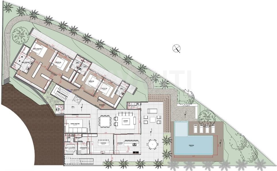 Com 4 suítes, lavabo, living integrado com home theater, sala de jantar, sala de estar, cozinha e gourmet.