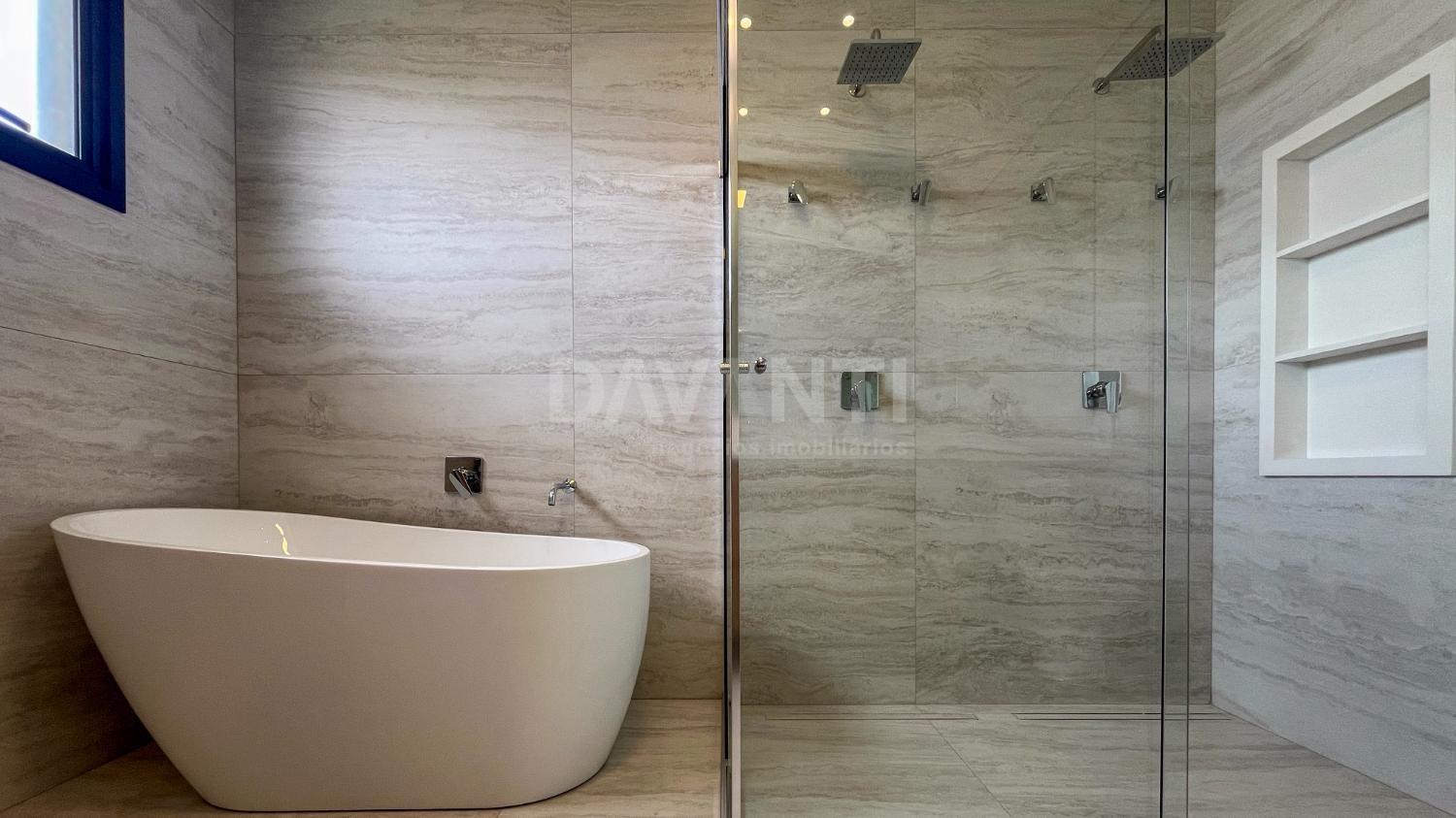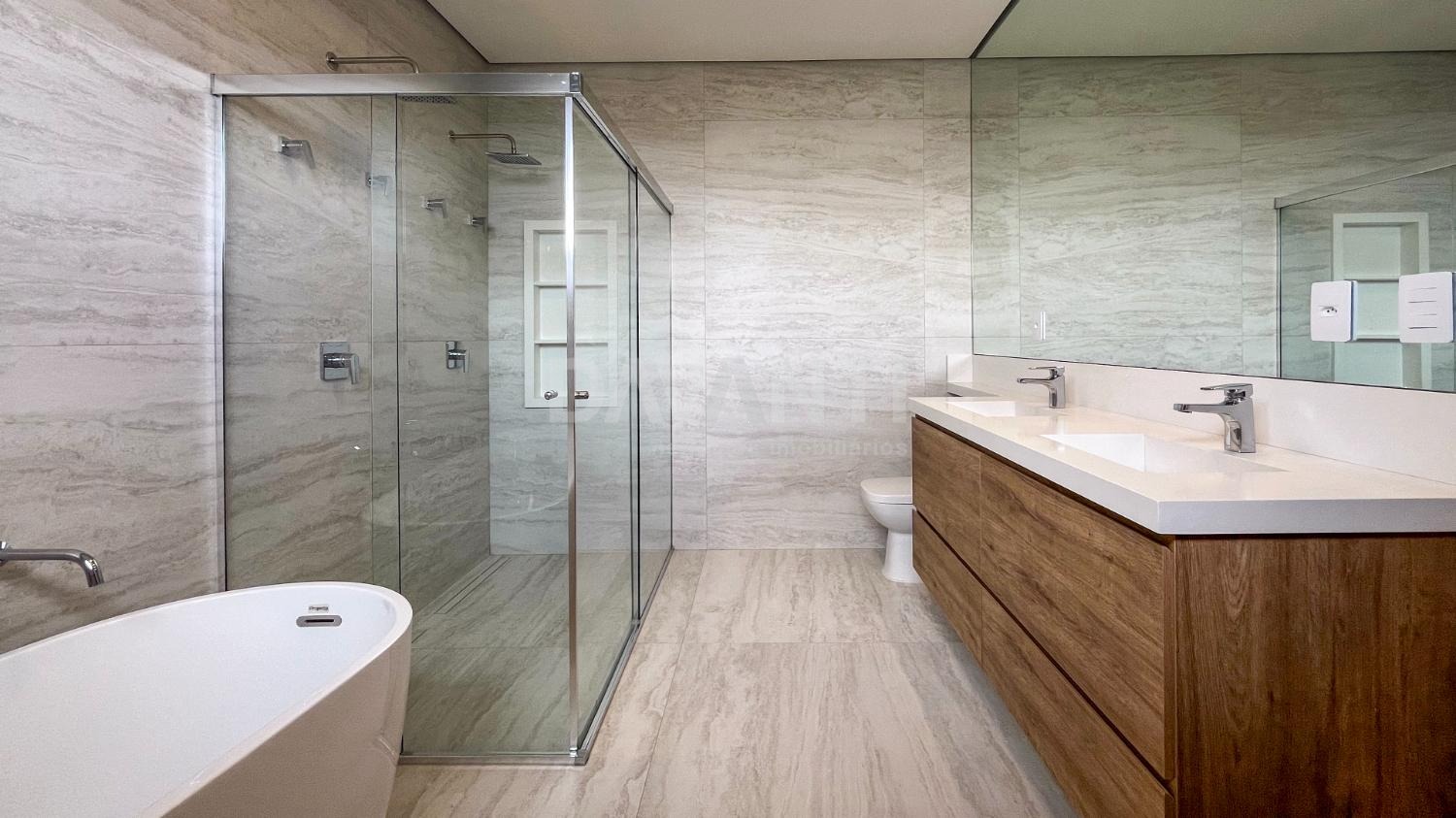 - 4 suítes com armários planejados, incluindo uma máster com closet, banheira e pia dupla.