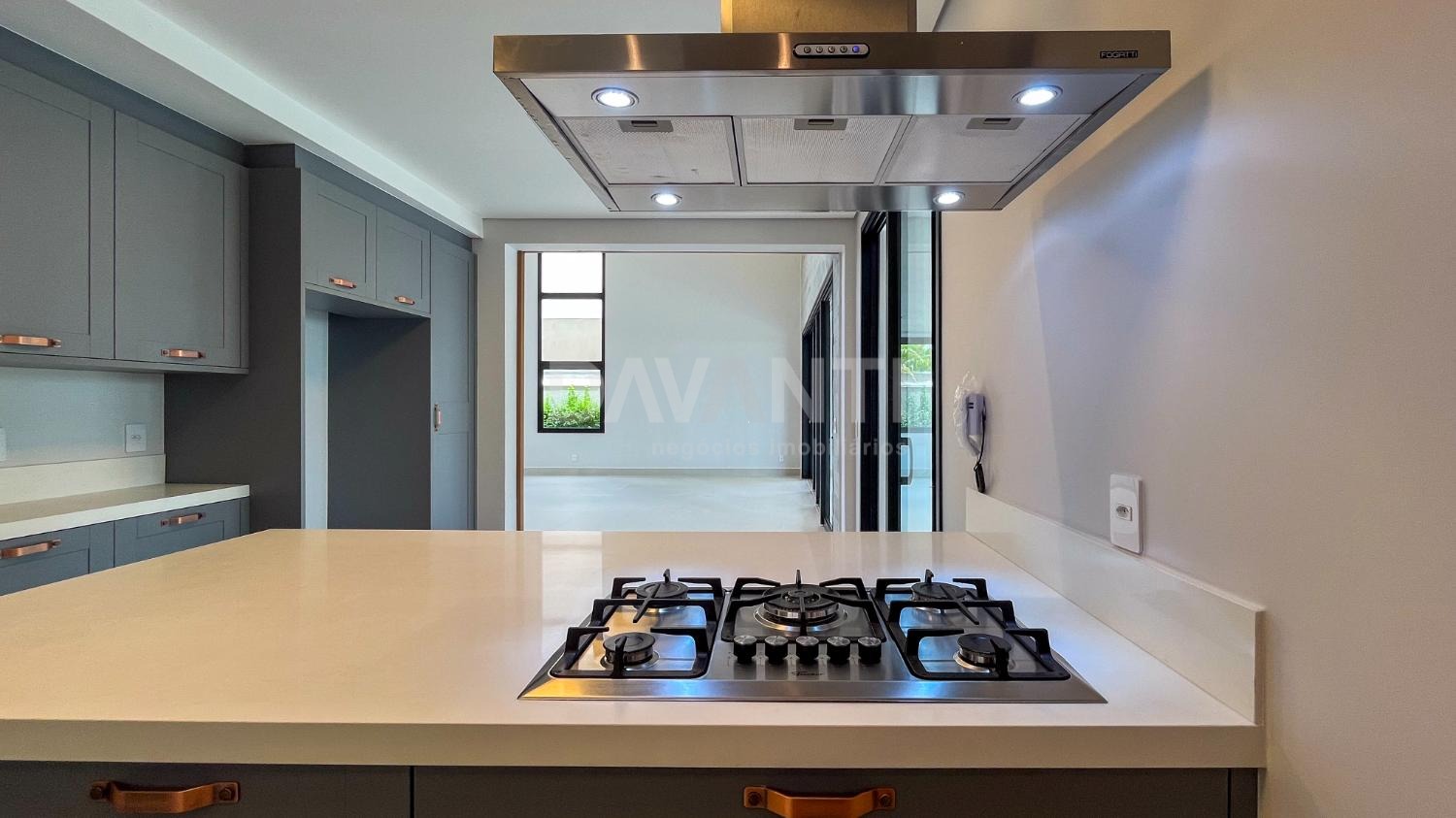 - Cozinha moderna com armários planejados Kitchens, entregue com cooktop e coifa de ilha