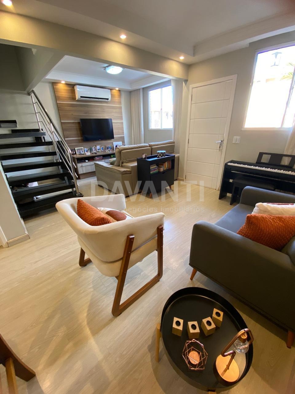 Casa à venda no Mansões Santo Antônio no Condomínio Village Corsega em Campinas na Davanti Negócios Imobiliários. Sobrado com 3 quartos planejados (sendo 1 suíte), 2 com ar-condicionado. Sala para 03 ambientes, TV, estar e jantar. Lavabo, cozinha planejada, com despensa. Área goumert com churrasqueira e forno de pizza, fechada com vidro. Lavanderia planejada. Área de lazer com piscina adulto e infantil, salão de festas churrasqueira, playground e portaria 24h. Próximo de supermercado, farmácias e academias. Fácil acesso ao Shopping Parque Dom Pedro, Unicamp e Puccamp. Agende sua visita com a Davanti Negócios Imobiliários.