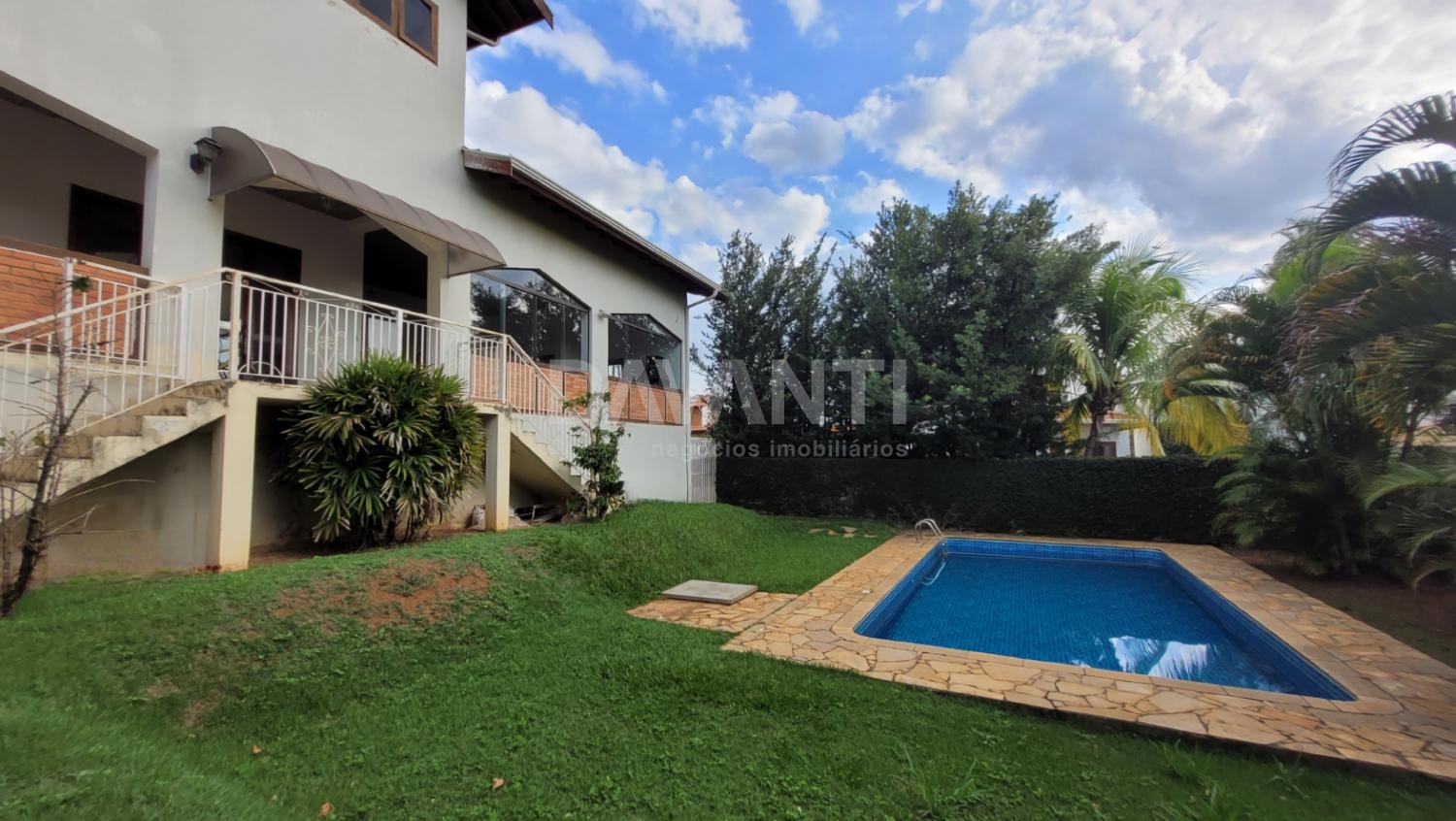 Casa à venda no Condomínio Estância Paraíso em Campinas na Davanti Imóveis. Sobrado com 590m² de construção em terreno de 1100m². Um lugar de paz e tranquilidade, dispõe de 4 suítes na parte superior e um living, home office no térreo, living para 3 ambientes com lareira, lavado, ampla cozinha planejada, ampla lavanderia com quarto de serviço, despensa, salão de festas com banheiro, piscina, aquecimento solar nos chuveiros e torneiras, vaga de garagem para 4 carros. A arquitetura da casa projetada com ambientes amplos e muito bem distribuídos e arejados. Quintal com árvores frutíferas. Condomínio com completa infraestrutura de lazer e ainda um marketplace para facilitar seu dia a dia. Agende sua visita com a Davanti Negócios Imobiliários.