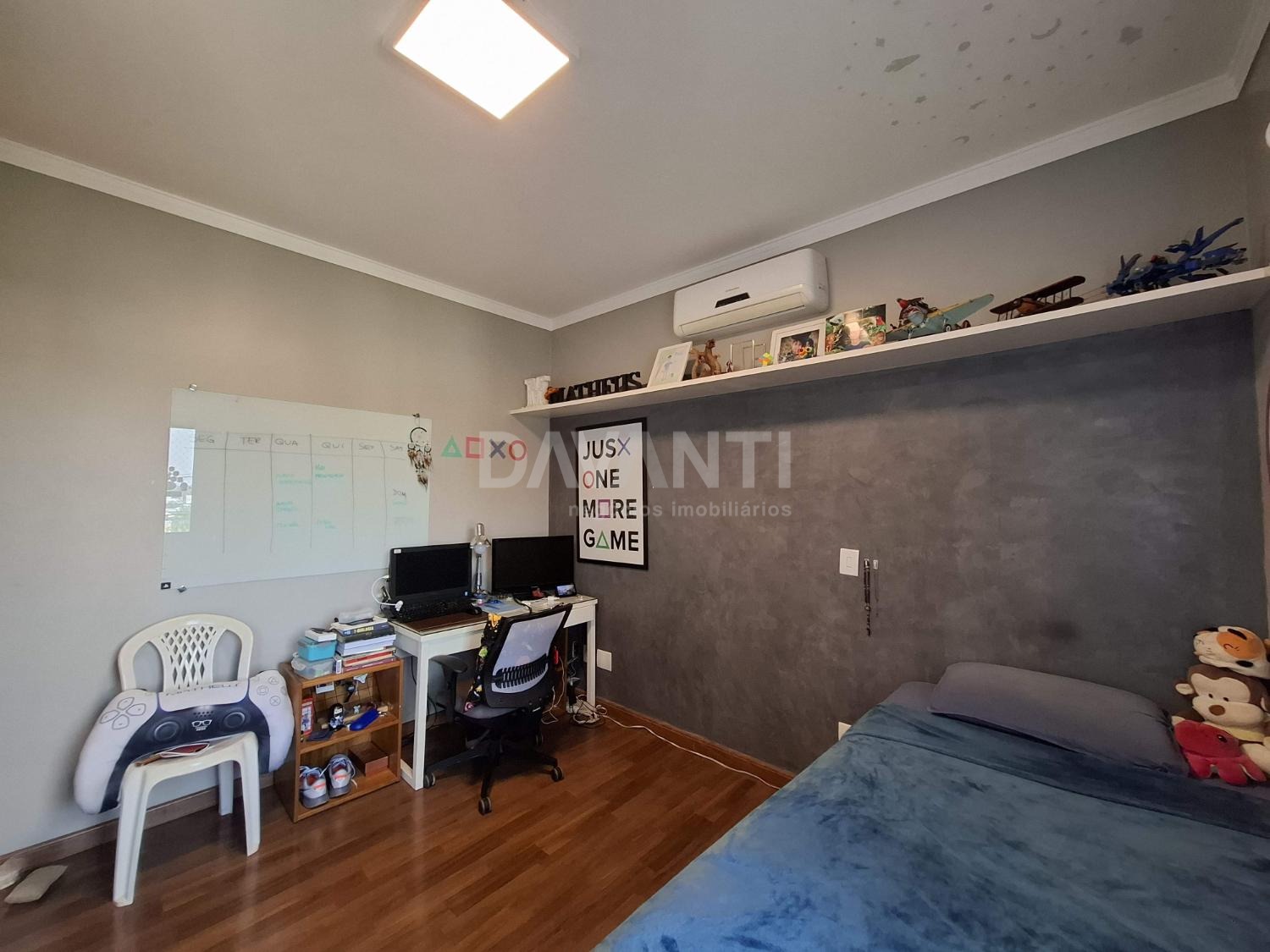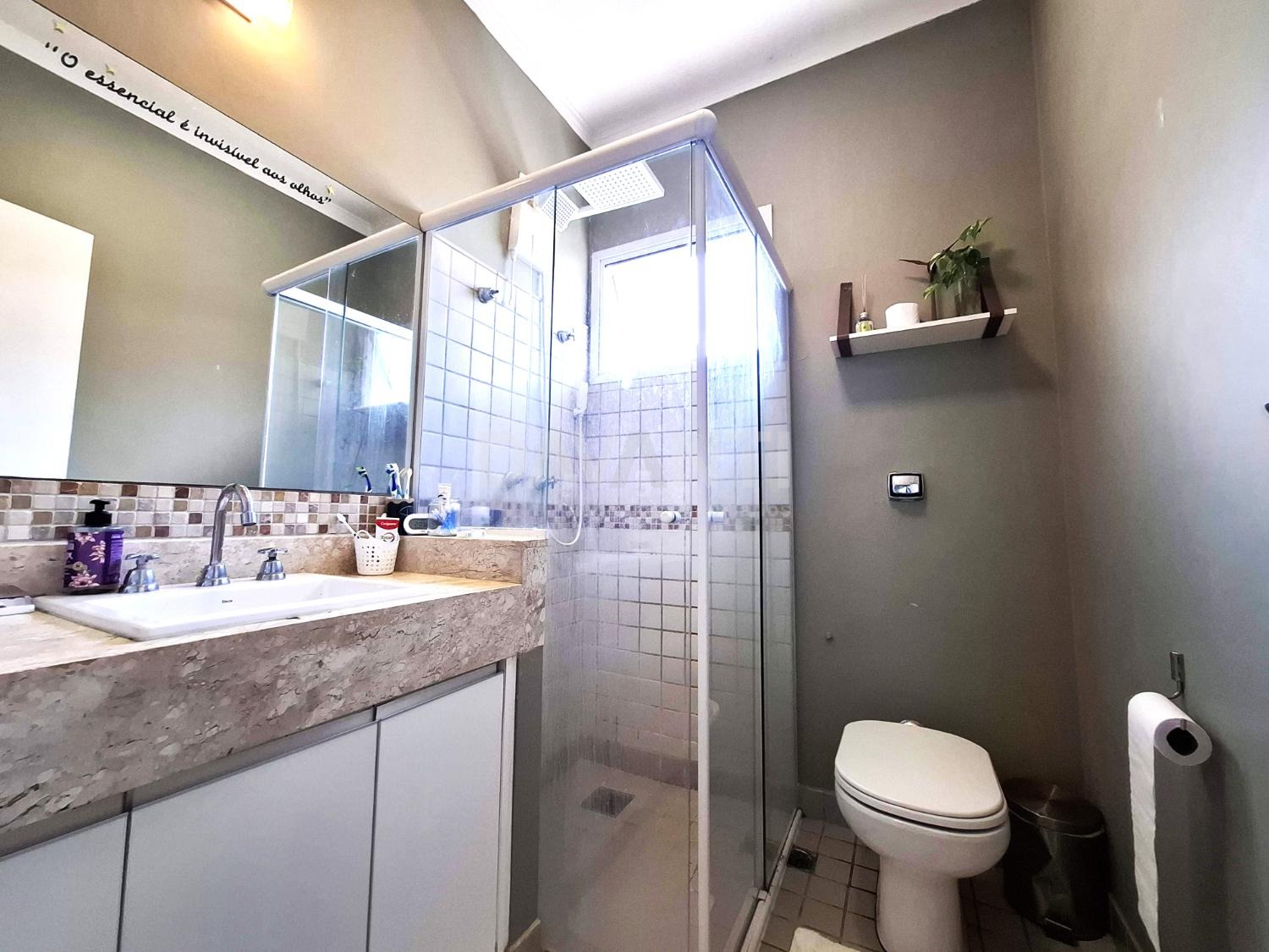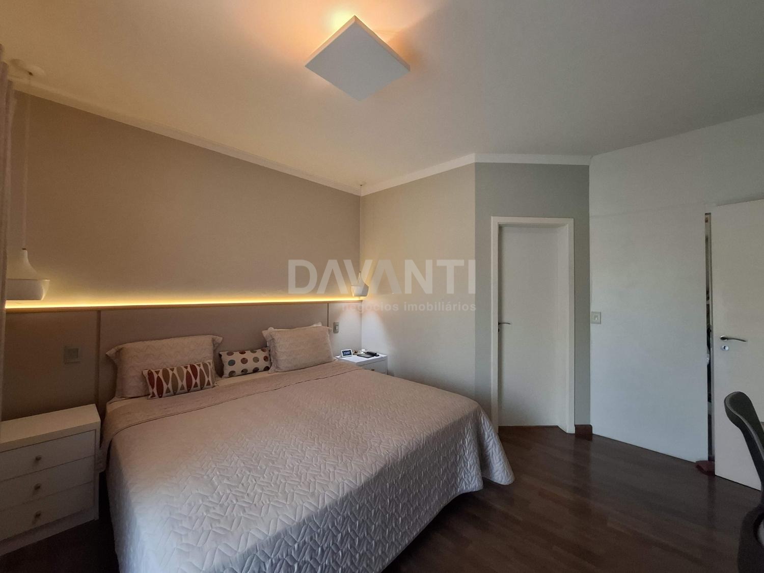 Três quartos com suíte: Todos equipados com armários e ar condicionado.