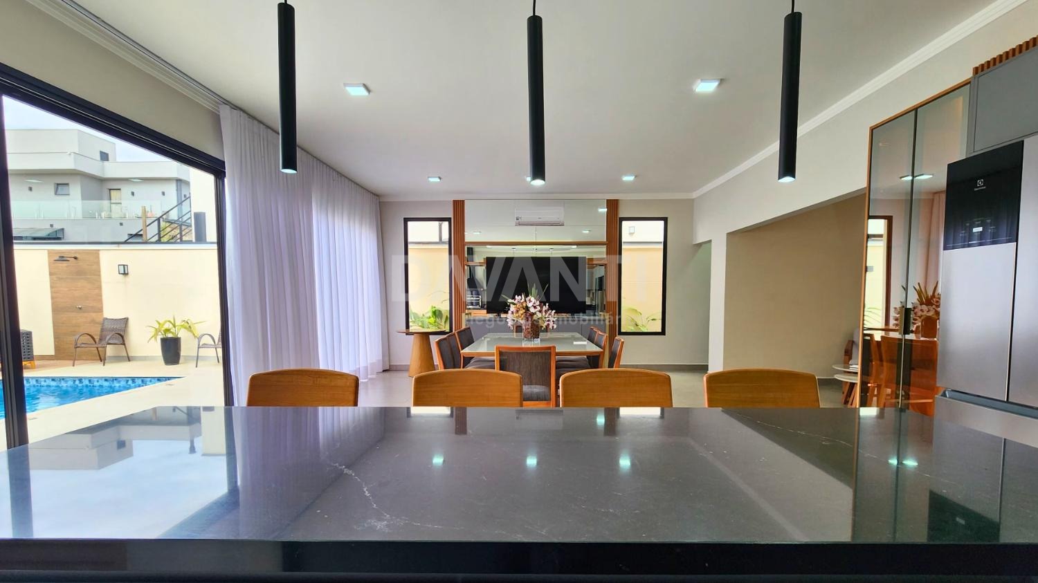 Casa à venda no Condomínio Residencial Tamboré em Jaguariúna na Davanti Imóveis. Confira esta incrível residência térrea, que harmoniza conforto e sustentabilidade. Com uma área construída de 234 m² em um terreno de 510 m², esta casa oferece amplo espaço e funcionalidades excepcionais. Possui corredores laterais que melhoram a circulação e o acesso ao exterior, além de uma garagem para 6 vagas, sendo 3 cobertas. A residência conta com 3 suítes com persiana automatizada e ar condicionado, sendo uma master com banheira, proporcionando conforto e privacidade. Salas amplas, cozinha americana com cortinas automatizadas, a churrasqueira nunca foi usada, lavabo. Alguns móveis ficarão na casa. A sustentabilidade é um ponto forte: o aquecimento solar garante água quente em todas as torneiras e chuveiros, enquanto a piscina aquecida, equipada com trocador de calor, é ideal para qualquer estação. A propriedade possui ainda uma usina própria para geração de energia elétrica, promovendo economia e sustentabilidade. Cada cômodo dispõe de ar condicionado, garantindo conforto o ano inteiro. Localizado em um dos melhores condomínios da região, oferece segurança 24h, lazer completo de clube, com 3 quadras de tênis em saibro, 2 quadras de futebol, 3 quadras de areia (vôlei e beach tênis), piscinas, clube com salão de festas, academia equipada, spa completo, brinquedoteca, pomares, trilhas e áreas verdes e fácil acesso a mercados, padarias e serviços essenciais. Esta é uma oportunidade única para viver com conforto e exclusividade. Descubra cada detalhe deste imóvel especial. Agende sua visita com a Davanti Negócios Imobiliários.