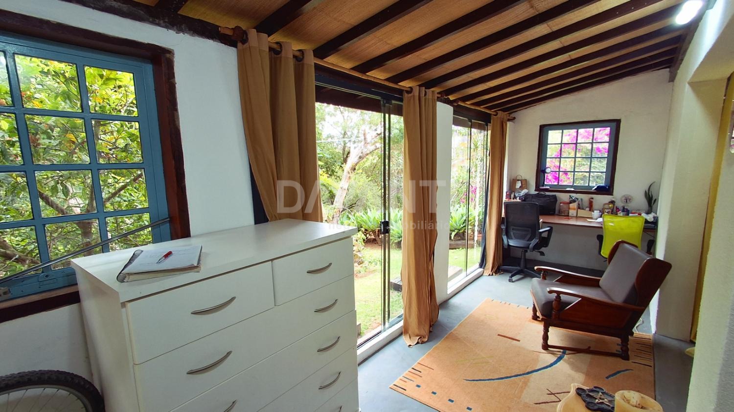Casa à venda no Condomínio Vale da Santa Fé em Vinhedo na Davanti Negócios Imobiliários. O Vale da Santa Fé é um residencial de chácaras de alto padrão localizado a cerca de 15 minutos do centro de Vinhedo, com fácil acesso a Campinas, Jundiaí, Valinhos e Itatiba. Projetado para quem busca tranquilidade, privacidade e contato com a natureza, destaca‑se por sua extensa área verde, três lagos preservados, trilhas ecológicas e fauna local diversificada (como aves e pequenos mamíferos). Portaria com controle de acesso facial e segurança 24h. A casa é térrea estilo rústico, recém reformada, conceito aberto, sala 4 ambientes com pé direito com 5m, lareira, varanda com vista para o pôr-do-sol, um verdadeiro espetáculo. São 4 quartos, sendo 2 suítes e a master com closet. Casa de hóspedes com quarto, sala, casa de banho, cozinha, lavabo e área de serviço. Espaço gourmet com piscina e churrasqueira. Escritório separado da casa principal medindo 50m² todo envidraçado, proporcionando interação com a natureza. Pomar com 57 árvores e mais de 10 bananeiras e de mamão produzindo, além de abacate, acerola, jabuticaba e amora. Energia solar e fotovoltaica garantem a sustentabilidade. Negocia os móveis a parte. Aceita financiamento. Não aceita permuta. Agende sua visita com a Davanti Negócios Imobiliários.