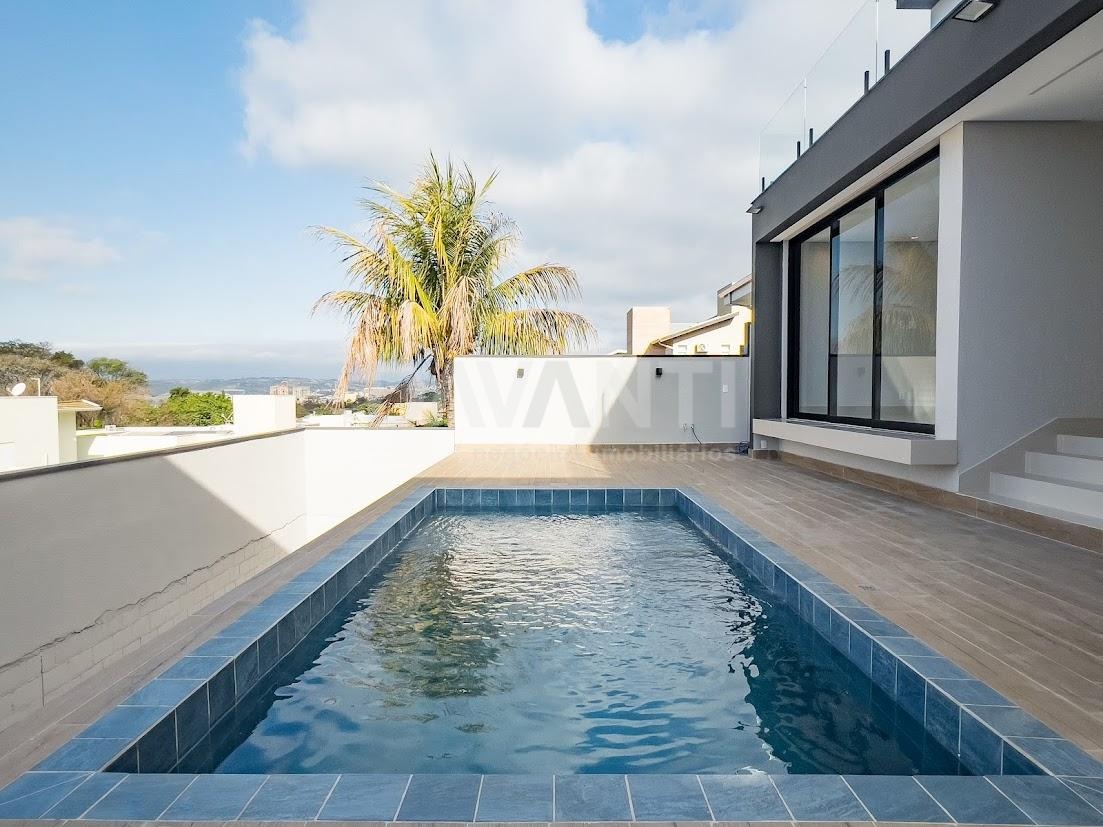 Casa à venda no Condomínio Zurich Dorf em Valinhos na Davanti Negócios Imobiliários. Excelente localização, na entrada da cidade, ao lado do Anel Viário, fácil acesso às principais rodovias da região, ao lado do Posto BR, McDonald's, loja de conveniência, padaria e Restaurante Madero. Casa nova, nunca habitada, arquitetura moderna, projeto arquitetônico, ambientes amplos e integrados, pé direito duplo, ventilação e iluminação natural, rica em armários planejados, fino acabamento, piso em porcelanato, preparada para ar condicionado em todos os ambientes, aquecimento solar, projeto luminotécnico e persiana automatizada. São 03 suítes, todas com varanda, sendo 01 master com closet, banheira e linda vista. Living para 03 ambientes, lavabo, escritório, cozinha americana completa com cooktop e exaustor, despensa e lavanderia. Espaço gourmet com churrasqueira fogão e exaustor, banheiro de apoio, piscina com prainha, hidro e iluminação, garagem para 2 carros. Condomínio com fiação subterrânea e completa área de lazer, com piscina, salão de festas, churrasqueira, playground, pista de caminhada, quadra poliesportiva, quadra de beach tennis, área de preservação com muito verde e lago. Agende sua visita com a Davanti Negócios Imobiliários.