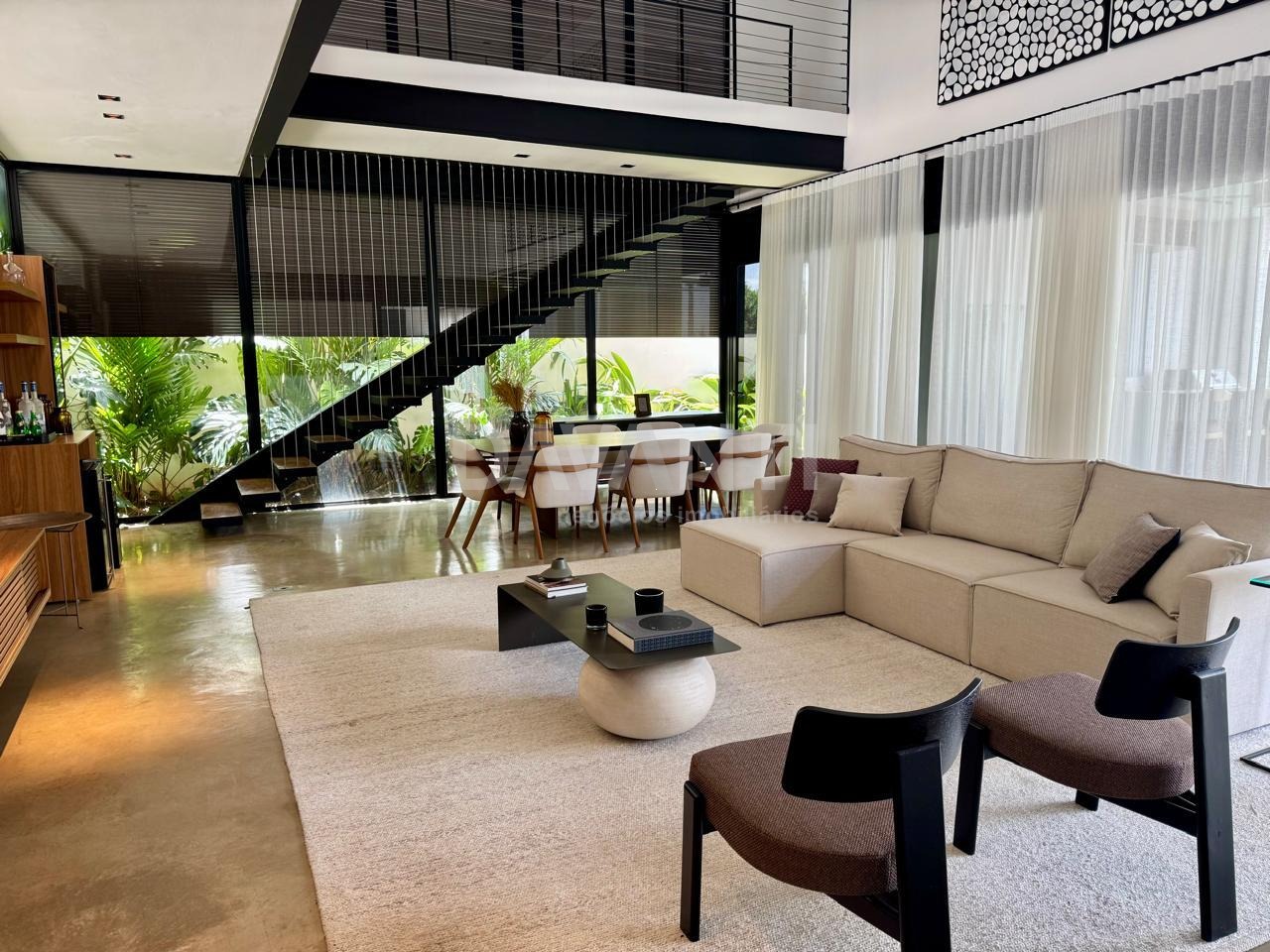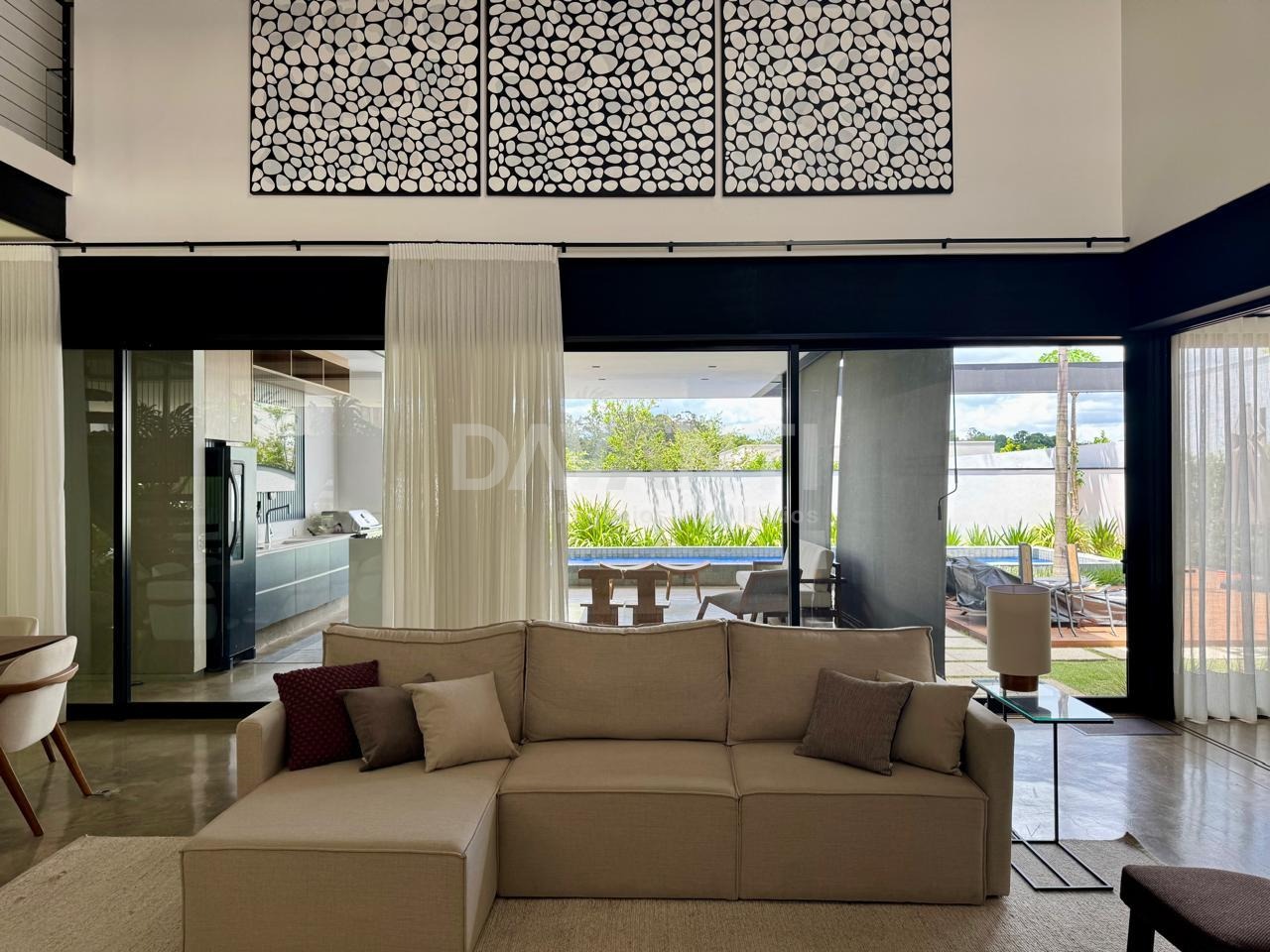Contemporânea e espaçosa. Belíssimo projeto do premiado Studio Fabricio Rodrigues que combina design moderno, sofisticação e conforto. Amplo living com pé direito duplo, acabamentos impecáveis, com home theater/ estúdio musical com isolamento acústico no piso térreo reversível para 4ª suíte. Os ambientes integrados oferecem leveza, fluidez e excelente luz natural. A área externa é encantadora e com um simples deslizar de portas torna-se um ambiente totalmente integrado à casa. O espaço gourmet se conecta a piscina aquecida e iluminada em pedra Hijau, com banheiro externo completo. Possui 3 suítes (todas com blackout automático e ar condicionado), sendo 1 máster com 42 m², sacada com vista permanente e vidros acústicos, espaço para um excelente closet e banheiro com jardim interno, 2 chuveiros Hansgrohe de teto, bancadas em Corian e torneiras Axor assinadas pelo designer italiano Antonio Citterio. Torneiras, chuveiros e registros alemães (Hansgrohe), maçanetas e dobradiças alemãs (Häfele), ferragens dos armários austríacas (Blum) e bancadas e cubas fabricadas nos EUA em Corian – um material não poroso e higiênico, não permitindo que resíduos, bactérias ou fungos penetrem, além de não manchar e ser extremamente resistente. Box até o teto em todos os banheiros com vidros Blindex. Cozinha com armários, ilha e triturador americano Insinkerator, para tornar o seu dia a dia mais prático. Cozinha e área gourmet equipadas com produtos Elettromec. Possui 6 vagas de garagens, sendo 3 cobertas, aquecimento solar para todas as torneiras e chuveiros e um rooftop com uma vista extraordinária para o pôr do sol. Uma vida mais tranquila, com muito conforto e segurança, em um condomínio com salão de festas decorado, uma excelente academia, quadras de beach tennis e poliesportiva, playground, poucas casas e segurança com portaria 24 horas. Agende sua visita com a Davanti Negócios Imobiliários.