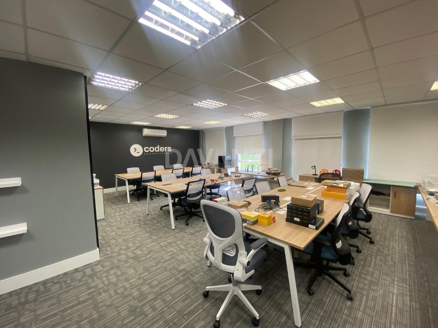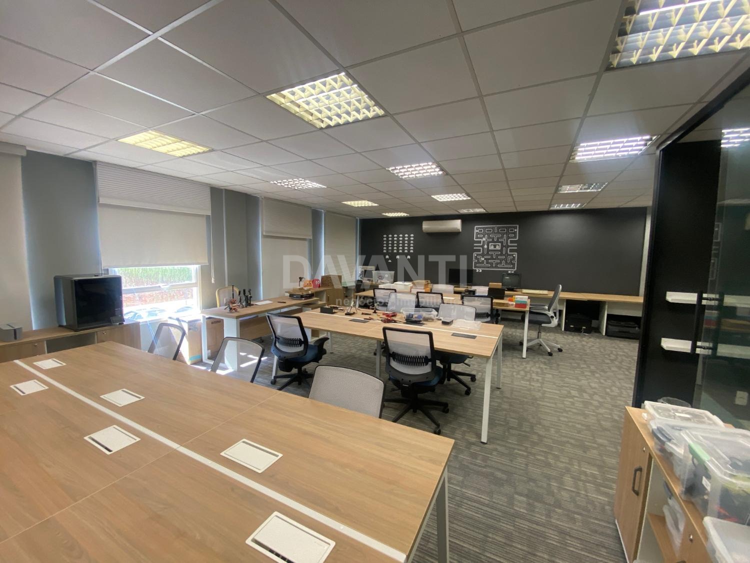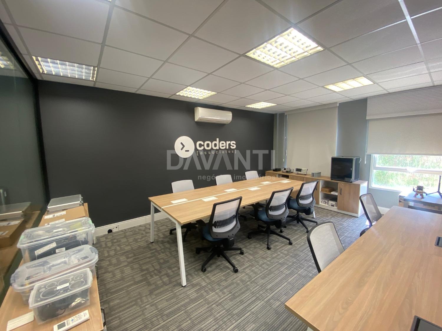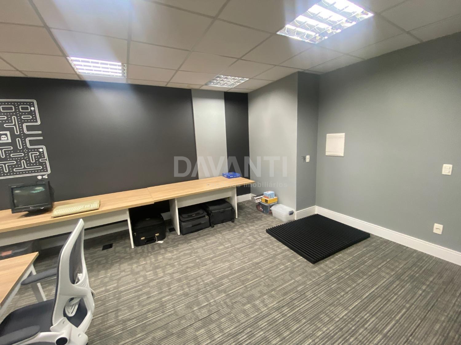 Sala para locação mobiliada mesas cadeiras e armários baixos, no Condomínio Spot Galeria em Campinas. Davanti Negócios Imobiliários. Situado em um dos melhores condomínios empresariais da cidade, com acesso direto ao Shopping Galleria, com paisagismo e infraestrutura de primeira qualidade. Salas conjugadas de 80 m² com recepção, ar condicionado, 1 banheiros e Ideal para escritórios, consultórios entre outros, com 2 vagas de garagens, tem o valet do Spot que faz preço especial para mensalistas. Pode-se usar o estacionamento do shopping e entrar direto pela passarela. Agende sua visita com a Davanti Negócios Imobiliários.