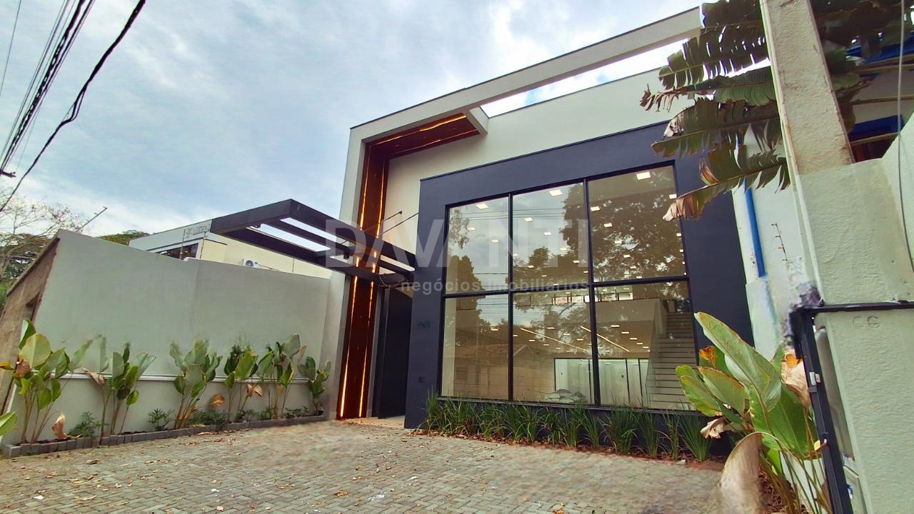 Salão para venda ou locação no bairro Nova Campinas em Campinas na Davanti Negócios Imobiliários. Localização privilegiada com acesso rápido para avenidas de alto fluxo, Shopping Iguatemi e Rodovia Dom Pedro. O salão tem 337m² de construção, sendo 204m² no térreo e 133m² no mezanino. São 4 banheiros, sendo 2 embaixo, uma copa de apoio e 2 em cima. Porta principal pivotada medindo 3m X 4,5m de altura, pé direito duplo, piso porcelanato, teto rebaixado, luz de led, preparado para ar condicionado, guarda corpo de vidro temperado, tomadas 110/220V, pias em granito, alarme e 4 vagas descobertas. Área permeável total de 24%. Aceita financiamento. Aceita permuta com casa em condomínio.